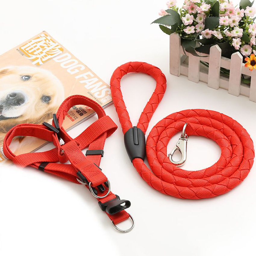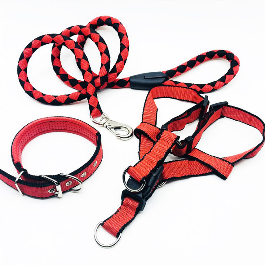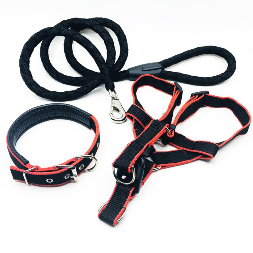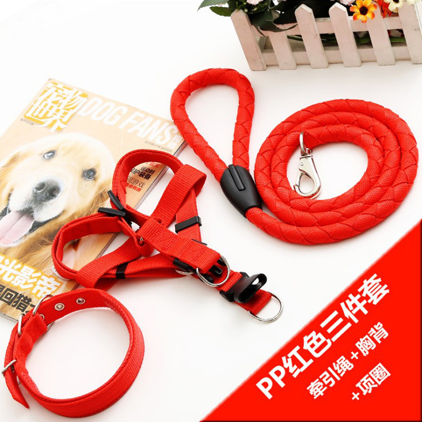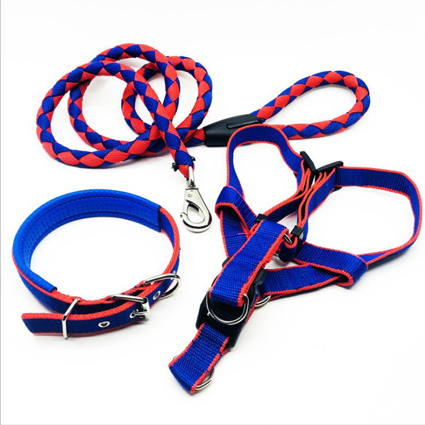 애완동물 견인 로프 칼라 개 체인 가슴 끈 조끼형 중대형 개 나일론 3 피스 애완동물 용품 도매