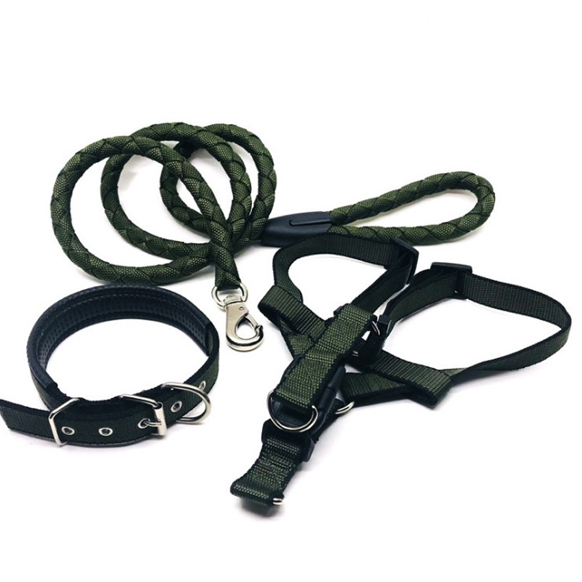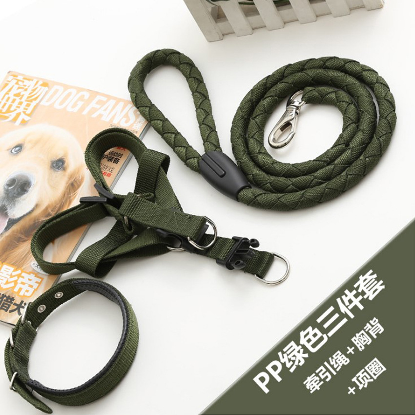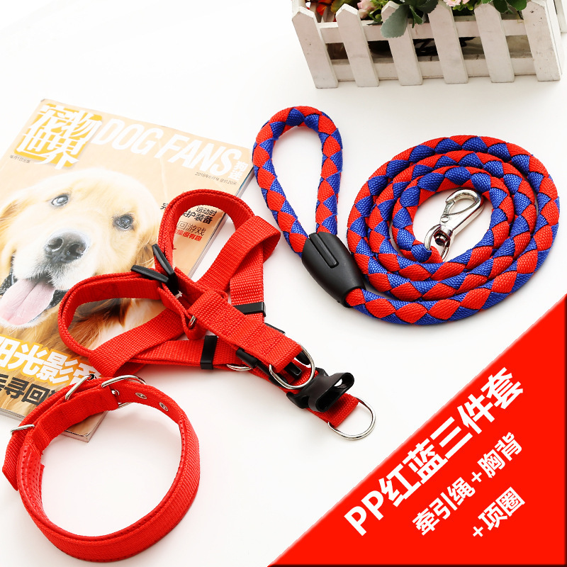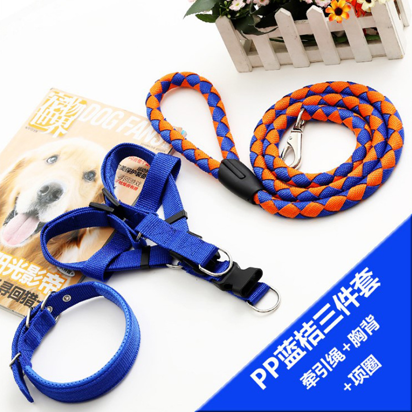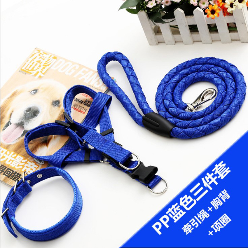 애완동물 견인 로프 칼라 개 체인 가슴 끈 조끼형 중대형 개 나일론 3 피스 애완동물 용품 도매스토어 가기
