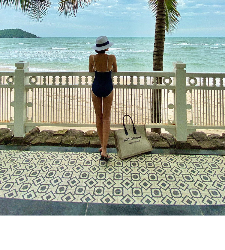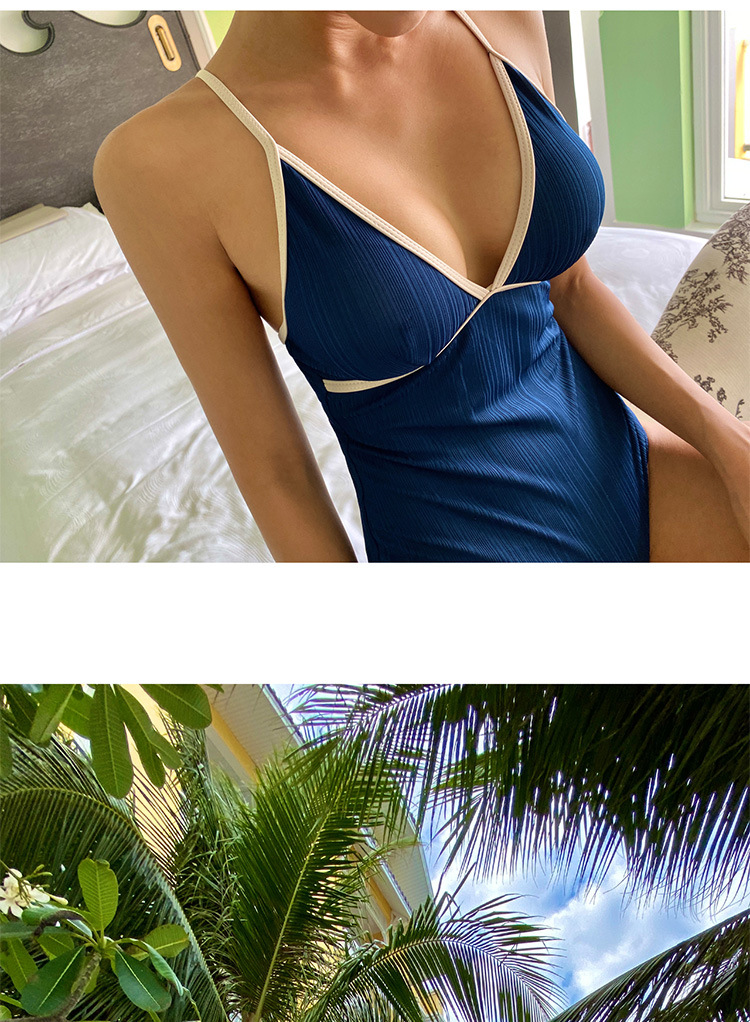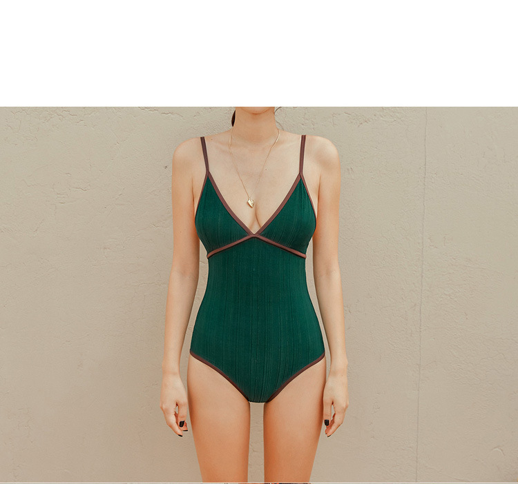 여성용 새로운 레트로 브이넥 슬링 슬림 비키니 원피스 수영복