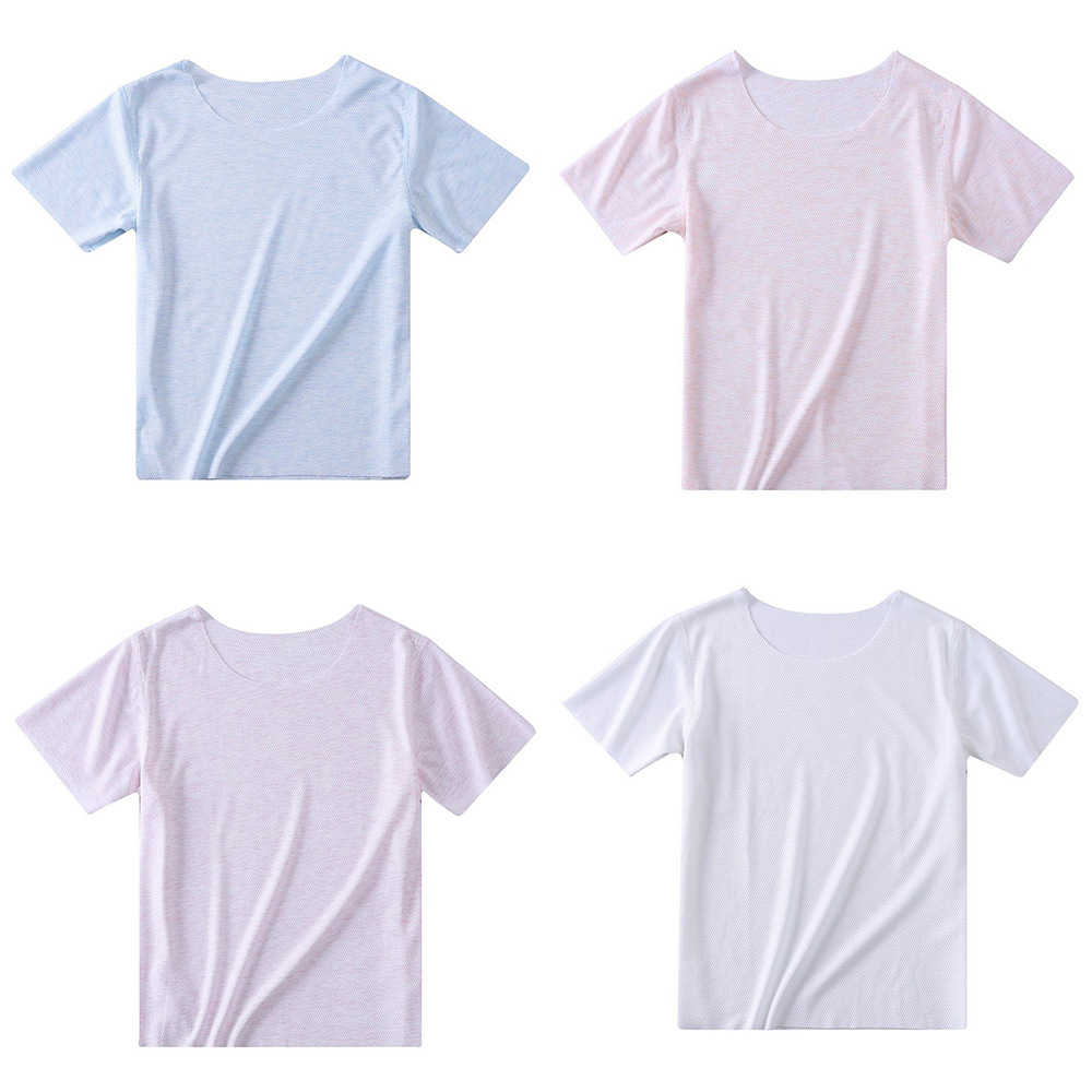 소년과 소녀를위한 어린이 메쉬 반팔 티셔츠 아기 야셀 초박형 반팔 탄성베이스 셔츠 여름 원활한