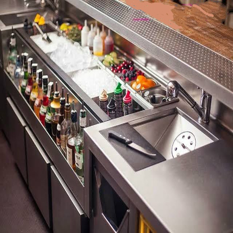 바 캐비닛 상업용 스테인레스 스틸 와인 트로프 캐비닛 위스키 운영자 책상 차단 책상 투명 바 칵테일 워터 바 작업대