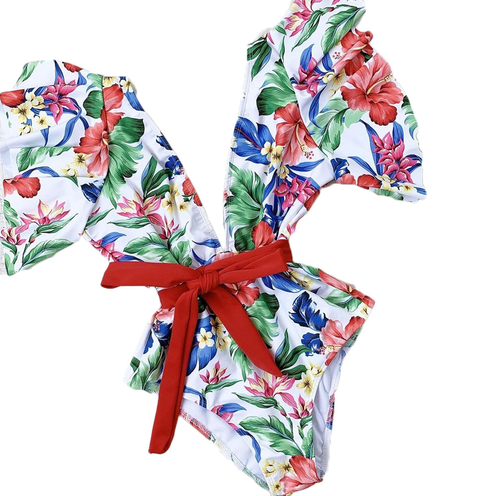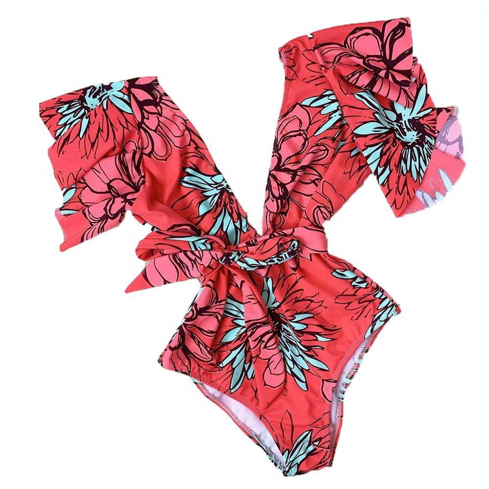 2020 유럽과 미국의 비키니 원피스 수영복 아가씨가 열대 식물 프린트 수영복 아마존 폭발