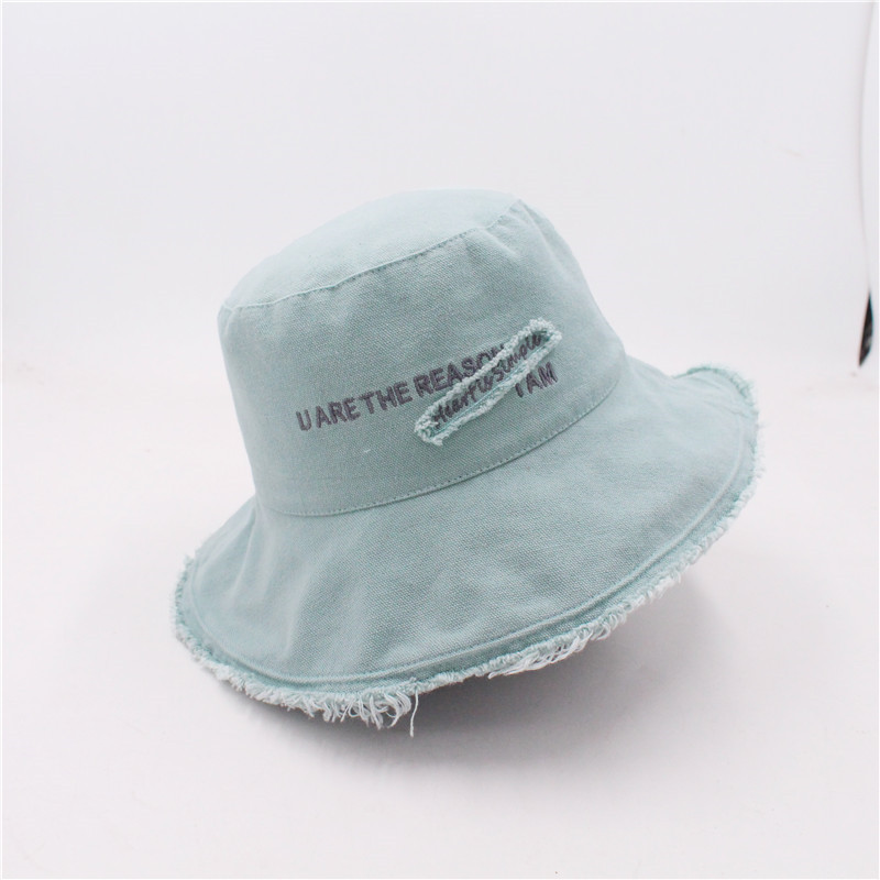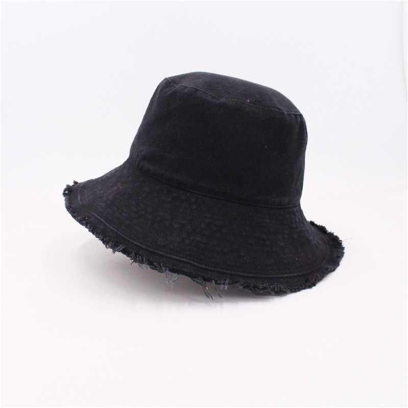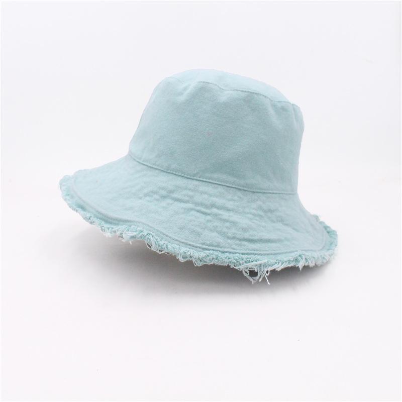 러핑 데님 어부 모자 여자의 봄과 여름 얇은 연삭 모자 단색 일본식 스타일 복고풍 올드 스타일 모든 일치 넓은 챙 분지 모자