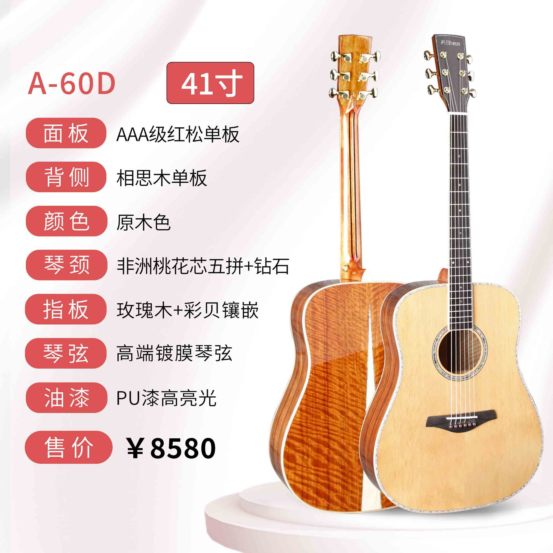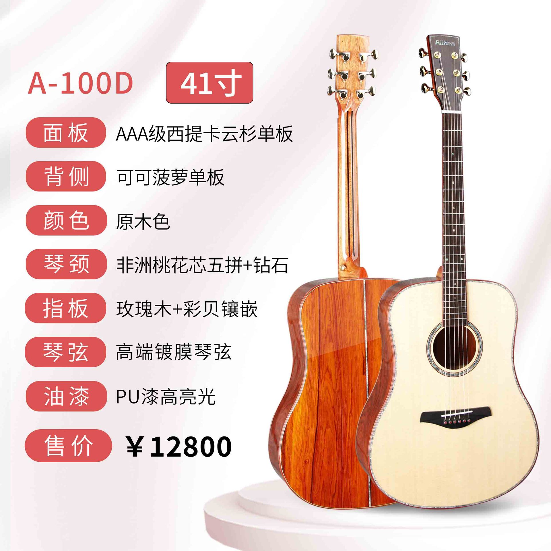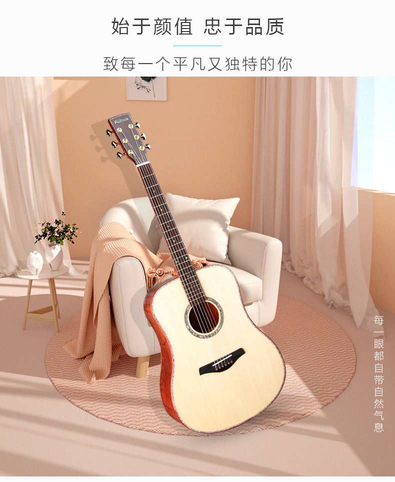 산토스 코코아 파인애플 아카시아 원목 기타 41inch 고급 가성비 원목 포크 악기