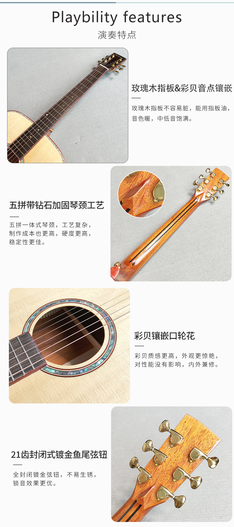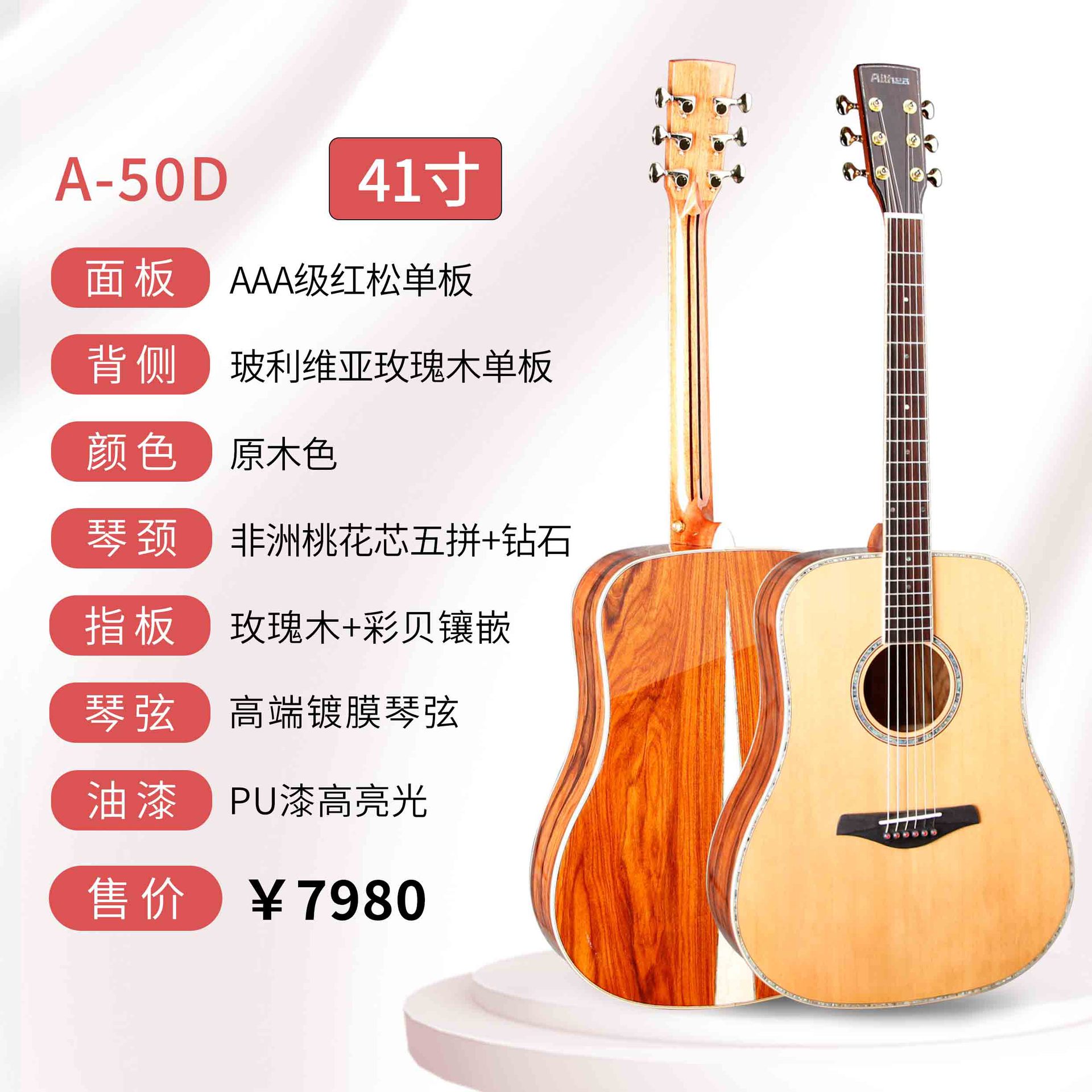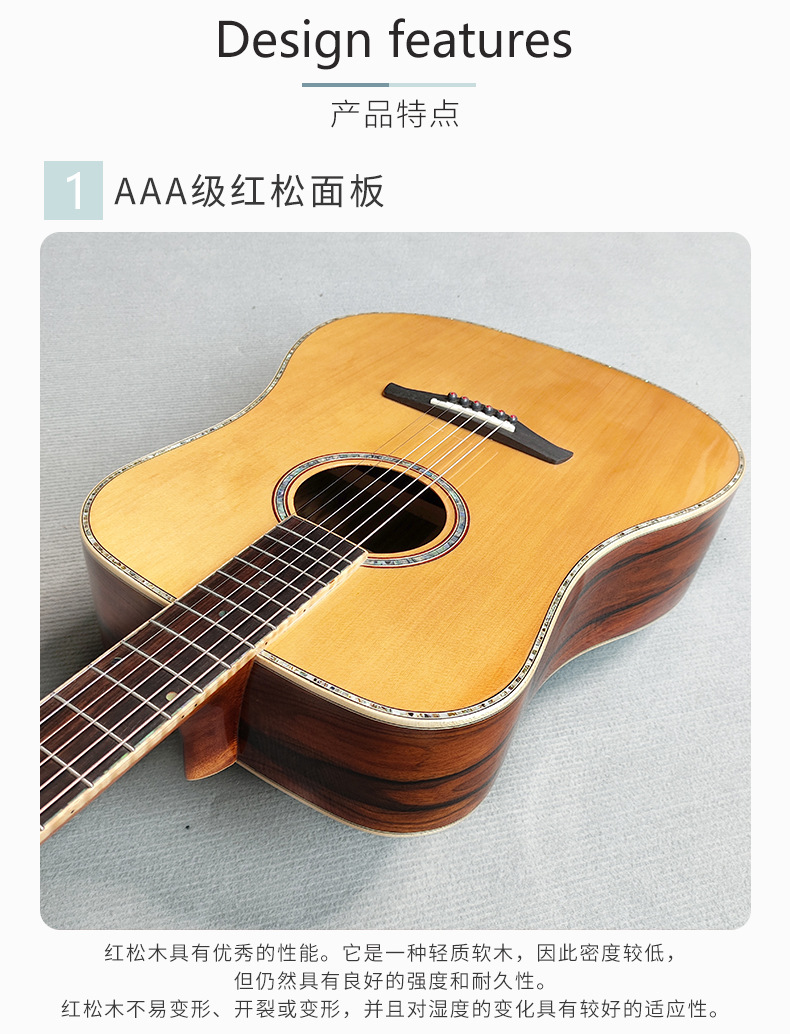 산토스 코코아 파인애플 아카시아 원목 기타 41inch 고급 가성비 원목 포크 악기