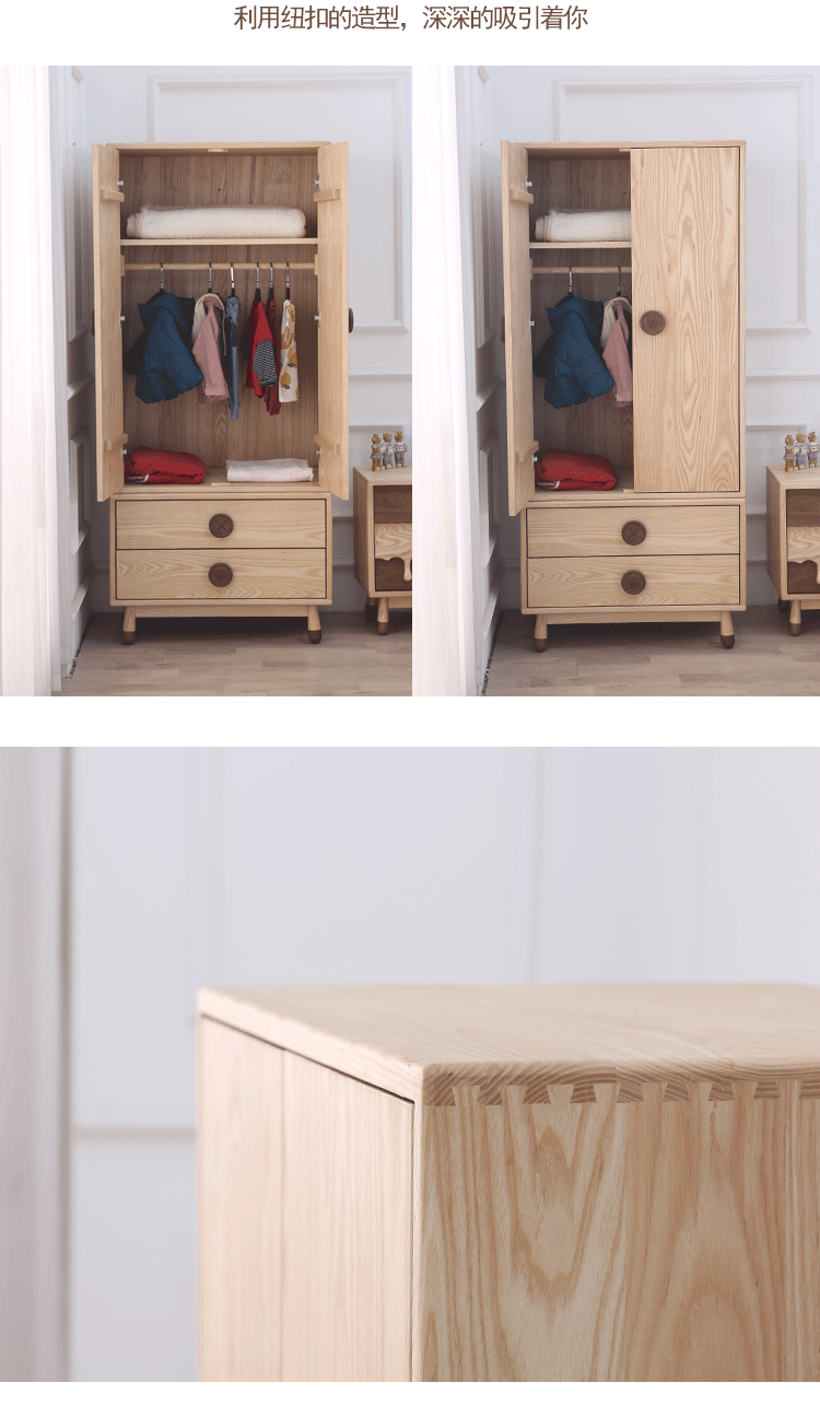 공장 배송 북유럽 애쉬 어린이 옷장 블랙 월넛 버튼 간단한 단단한 나무 보관 캐비닛 비스킷 침대스토어 가기