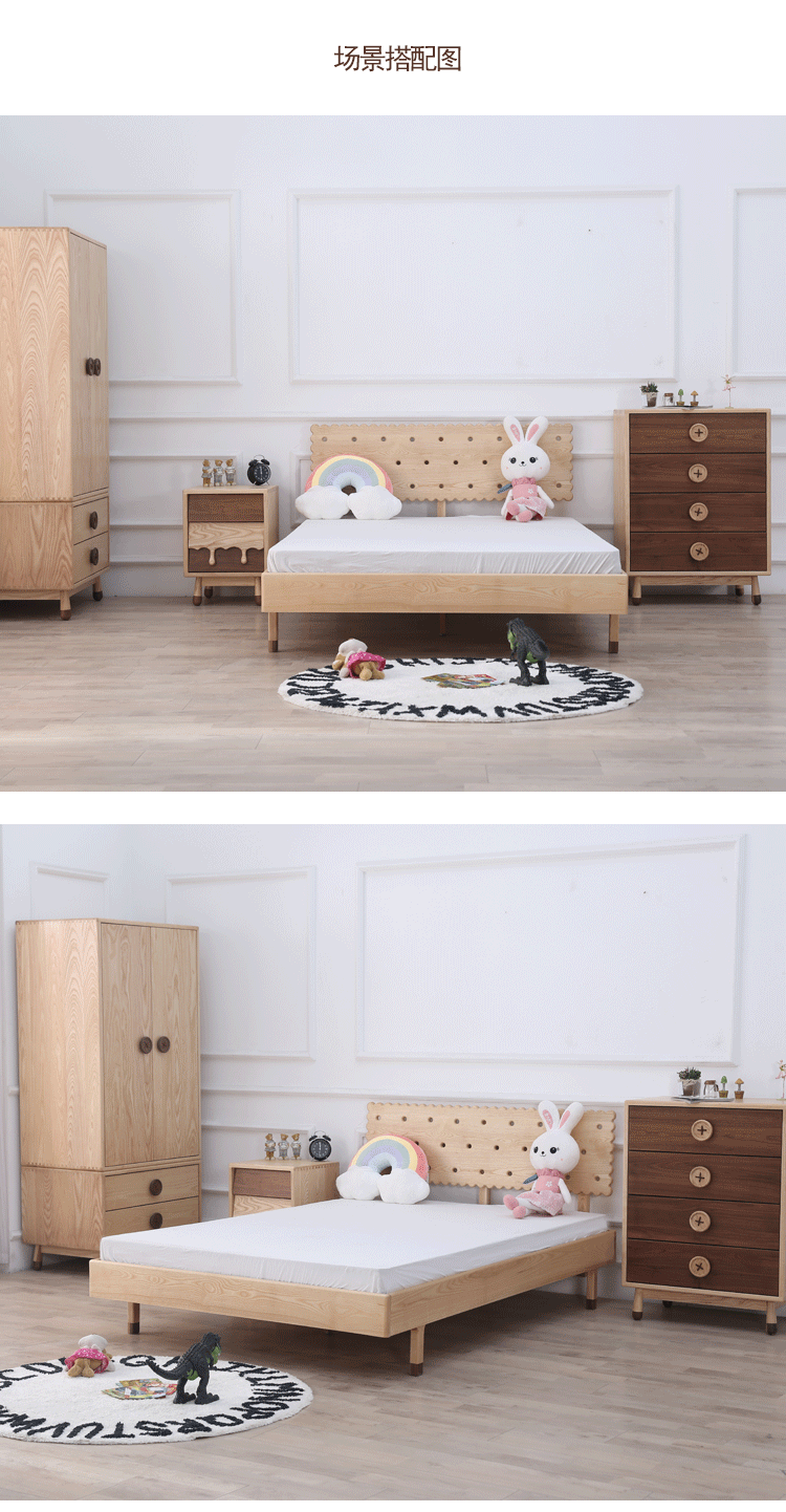 공장 배송 북유럽 애쉬 어린이 옷장 블랙 월넛 버튼 간단한 단단한 나무 보관 캐비닛 비스킷 침대