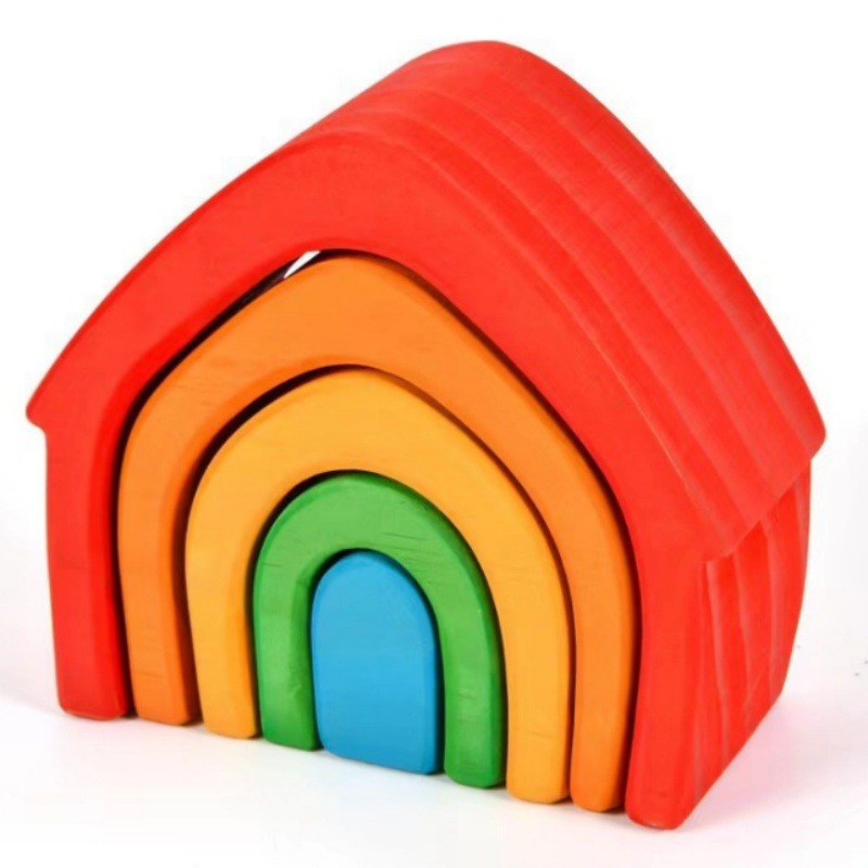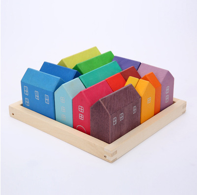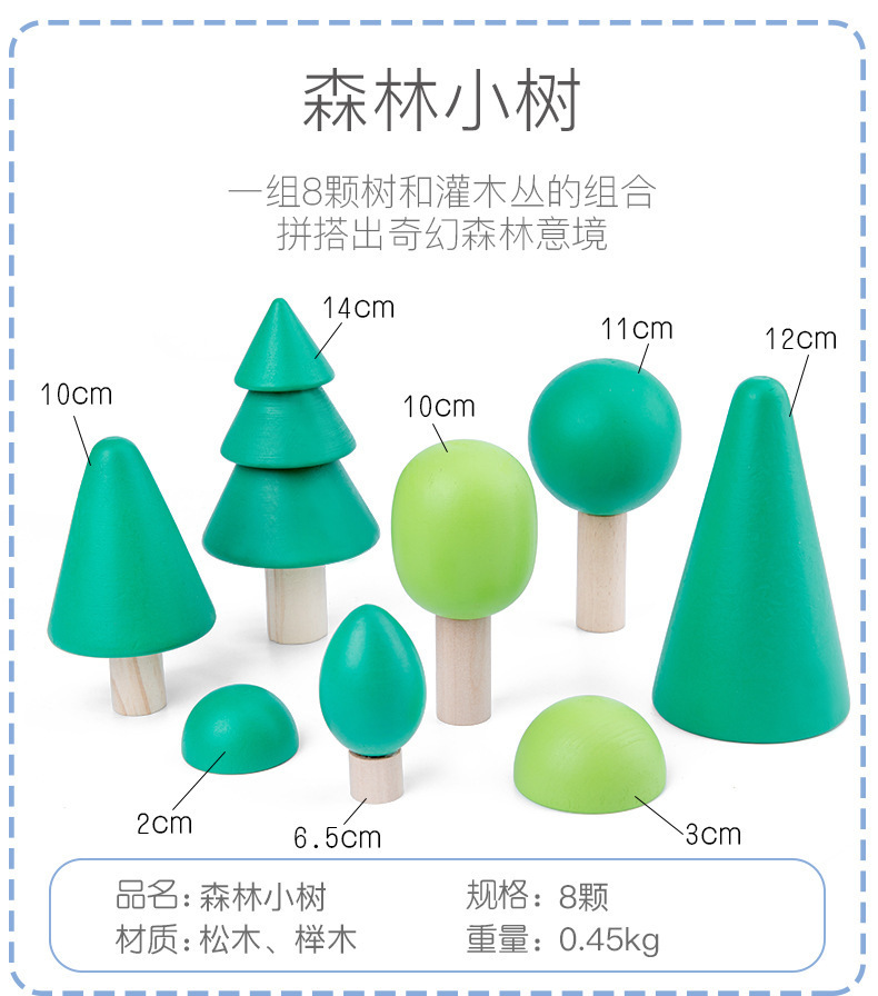 나무 숲 작은 나무 장난감 단단한 나무 무지개 빌딩 블록 4 가지 요소 어린이 교육 놀이 집 장식 장식품스토어 가기