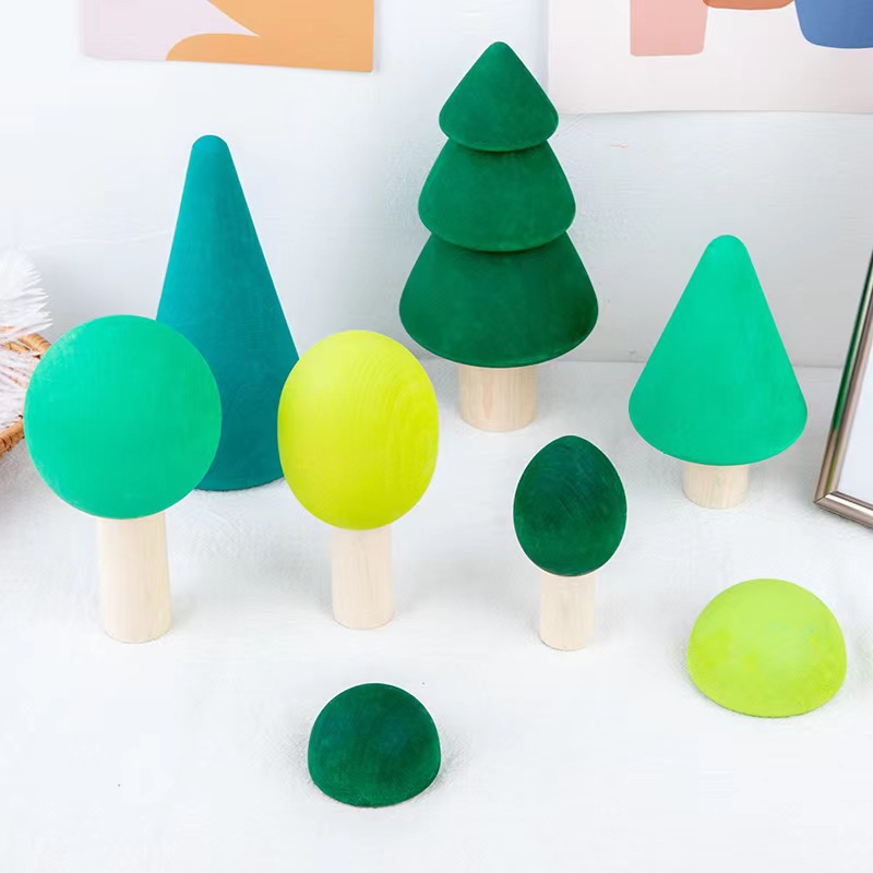 나무 숲 작은 나무 장난감 단단한 나무 무지개 빌딩 블록 4 가지 요소 어린이 교육 놀이 집 장식 장식품