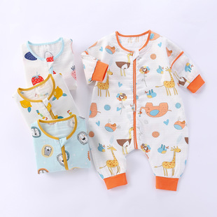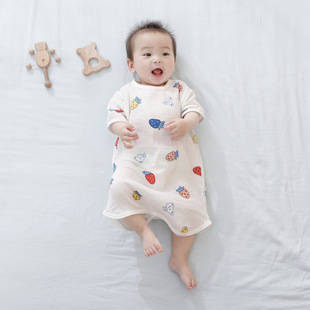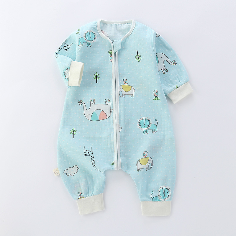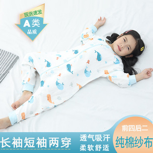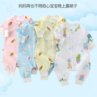 婴儿纱布睡袋纯棉卡通连体睡衣儿童分腿睡袋春秋夏薄款宝宝防踢被