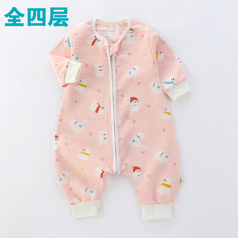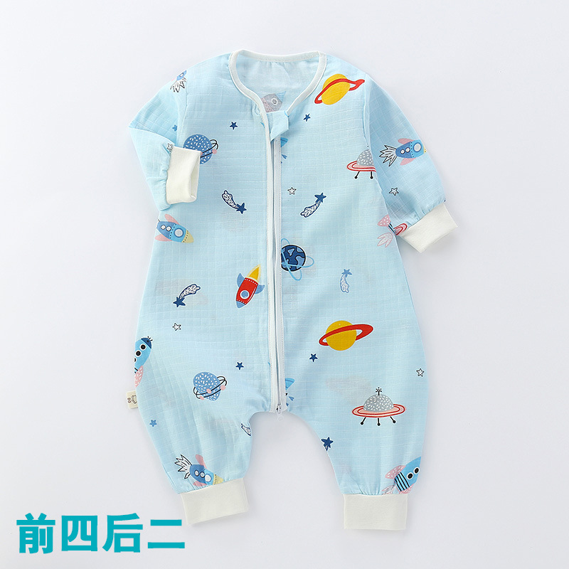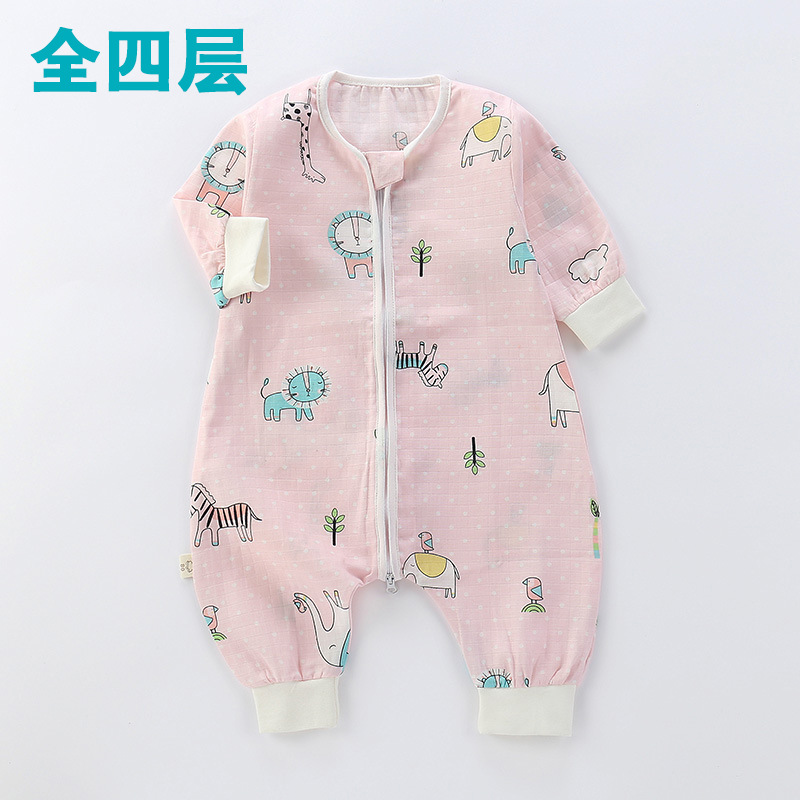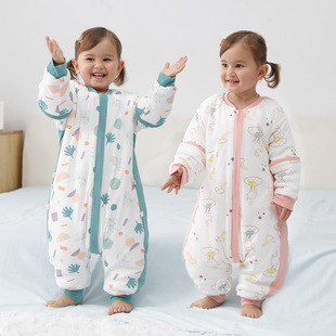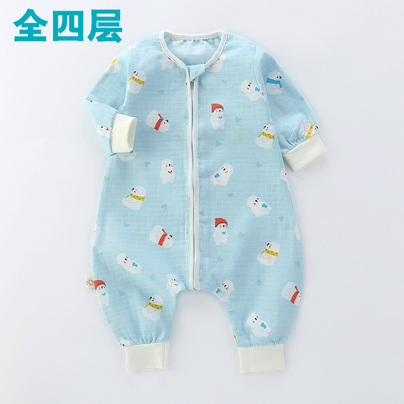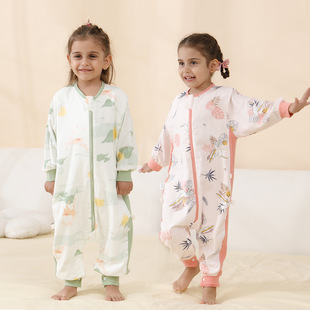 婴儿睡袋儿童分腿纱布睡袋春秋夏季薄款抗菌宝宝连体睡衣四季通用