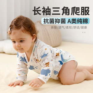 婴儿连体衣纯棉纱布a类新生儿三角哈衣宝宝爬爬服春秋夏季包屁衣