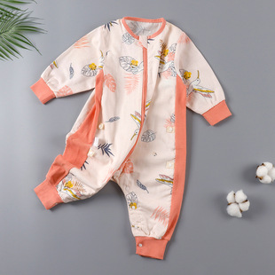 婴儿睡袋春秋纯棉儿童连体睡衣秋冬厚款夹棉宝宝分腿睡袋防踢被