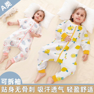 春夏儿童纱布睡袋婴儿分腿睡袋夏季薄款可拆卸袖宝宝睡衣四季通用