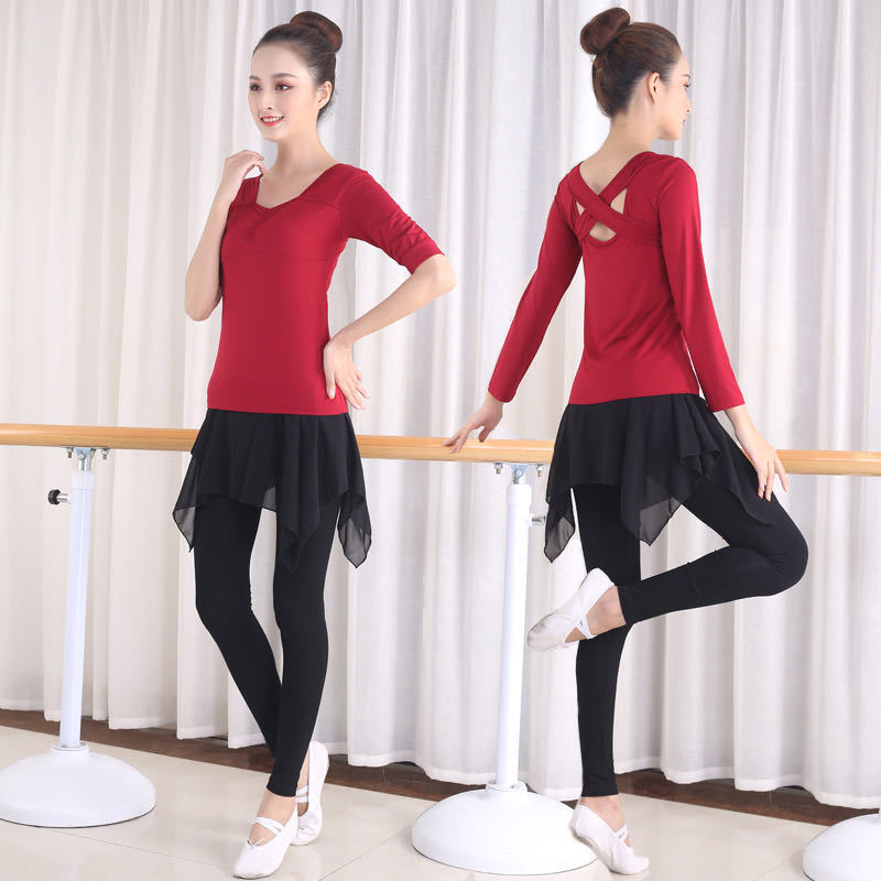 • 버건디 긴 소매 + 블랙 메쉬 스커트