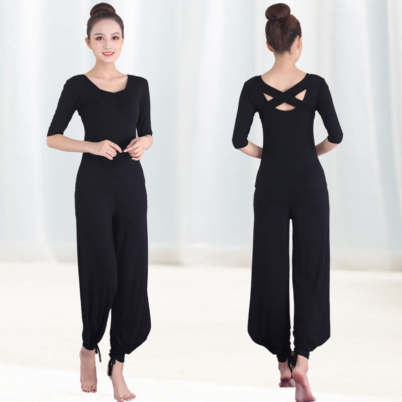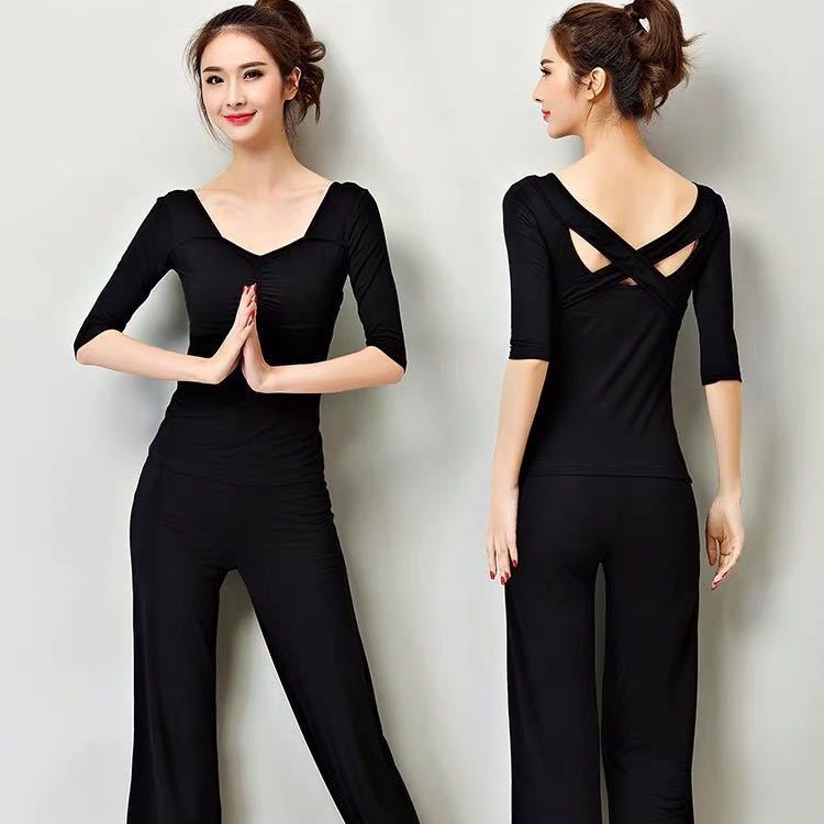 여성용 요가복 세트, 인터넷 유명인 전문 스포츠 에어로빅, 아름다운 등 라인을 살려주는 모달 소재, 슬리밍 효과, 댄스용, 통기성 좋은 모달 소재