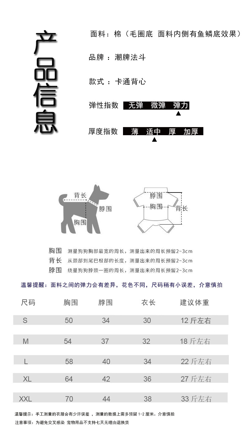 Fadou 옷 가을 패브릭 조끼 불독 퍼그 개 뚱뚱한 개 옷 면 덤보스토어 가기
