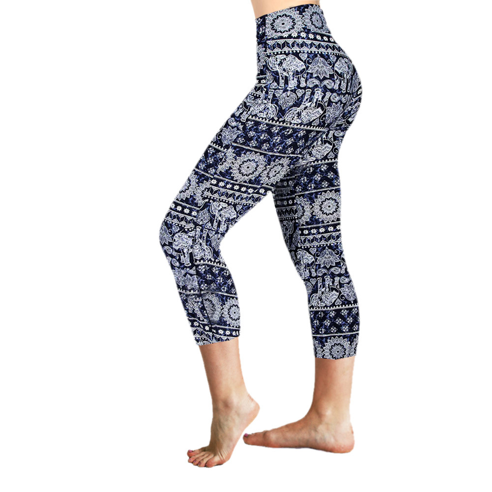 새로운 프린트 여성용 하이 웨이스트 배꼽 리프팅 엉덩이 슬림핏 요가 팬츠 통기성 속건 스포츠 레깅스 라이딩 팬츠스토어 가기