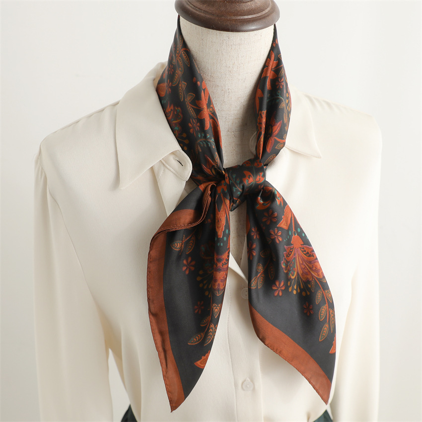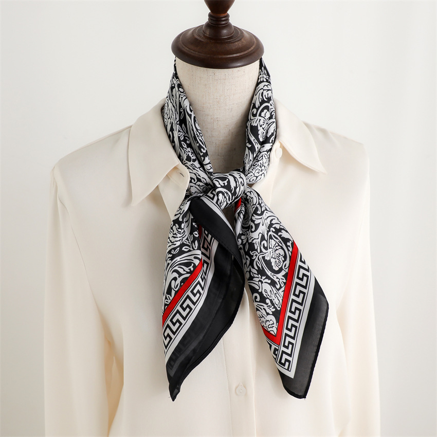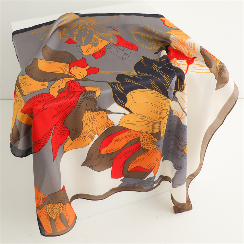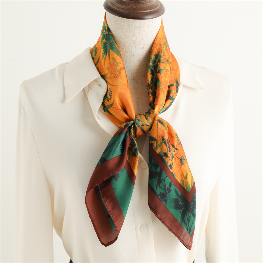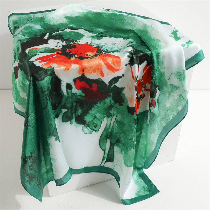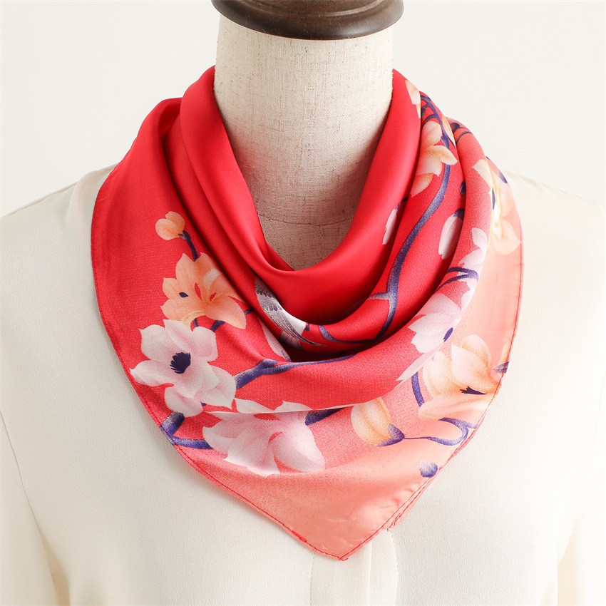 새로운 인쇄 실크 꽃 패션 작은 광장 스카프 여성의 봄과 여름 얇은 선 스크린 장식 실 실크 스카프 스카프