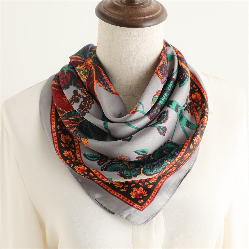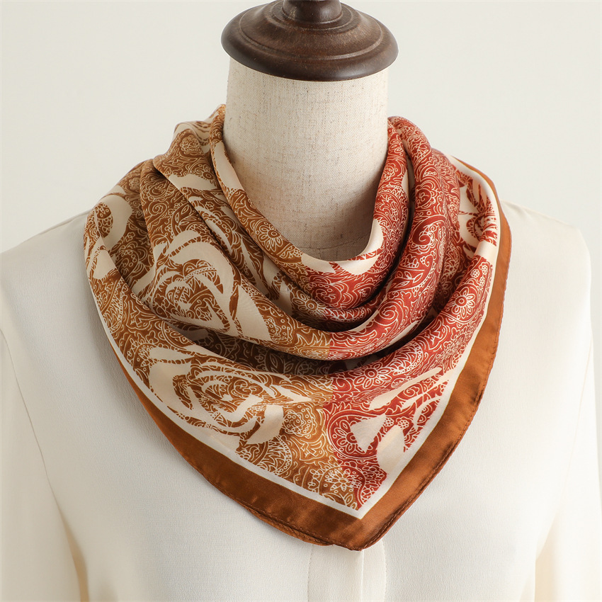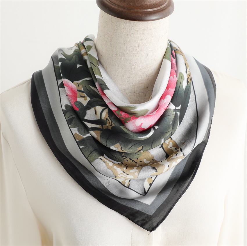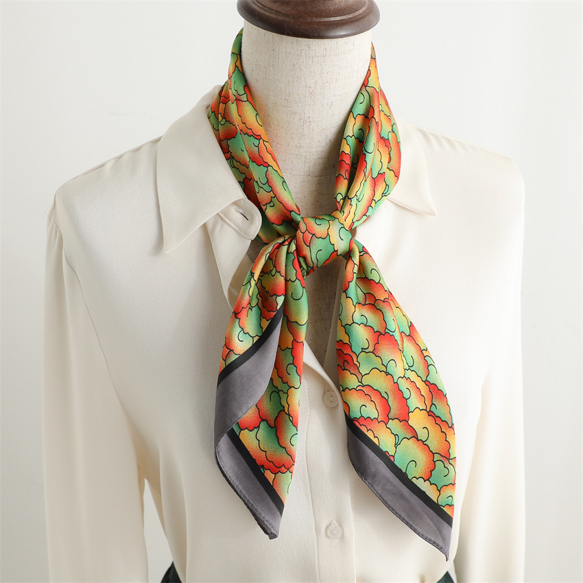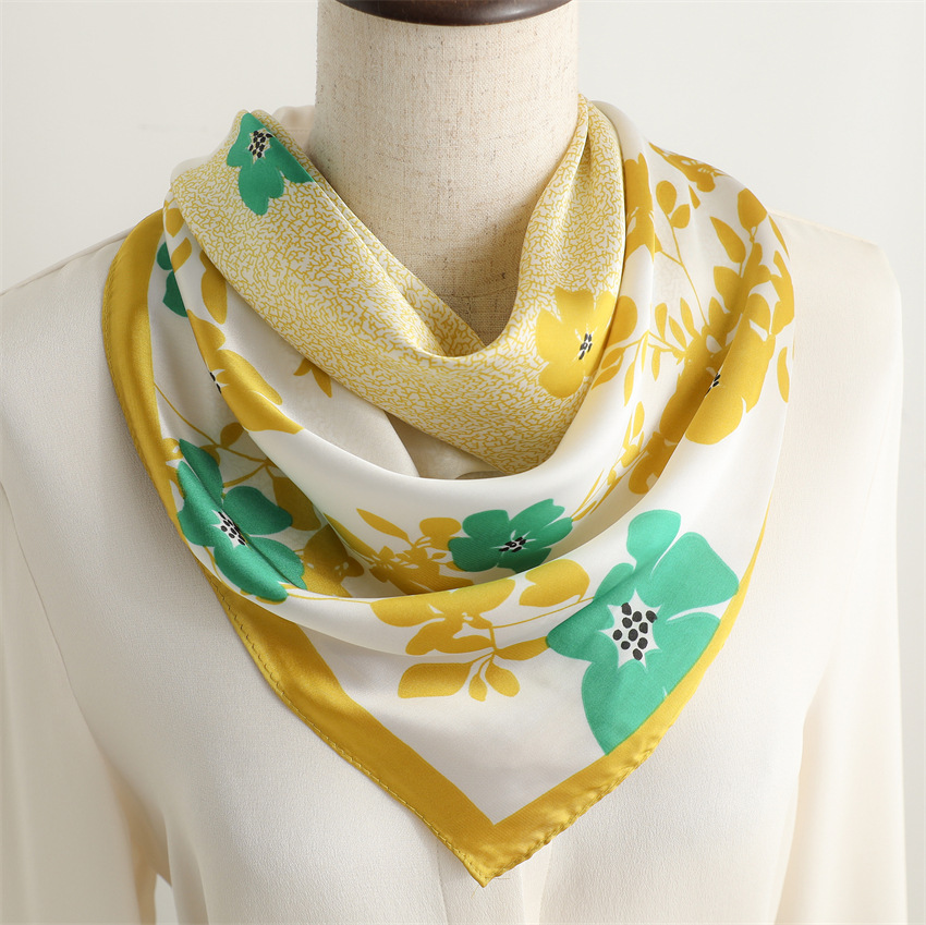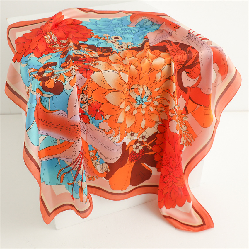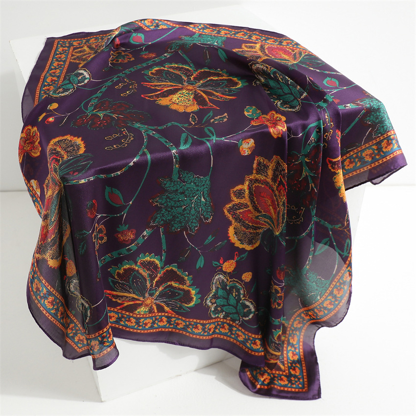 새로운 인쇄 실크 꽃 패션 작은 광장 스카프 여성의 봄과 여름 얇은 선 스크린 장식 실 실크 스카프 스카프