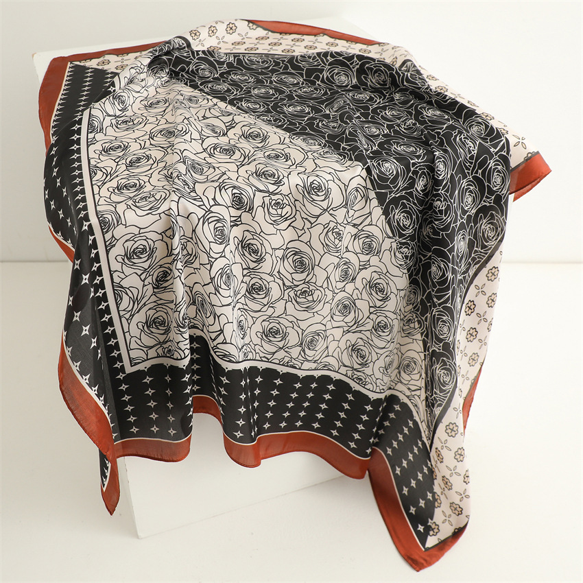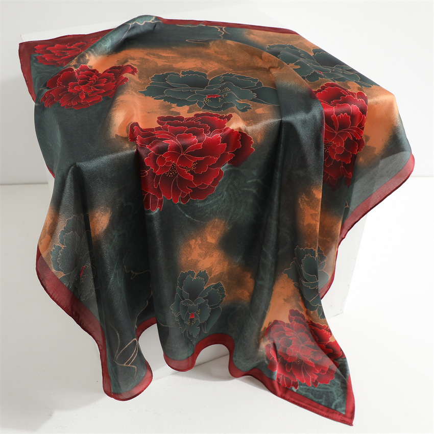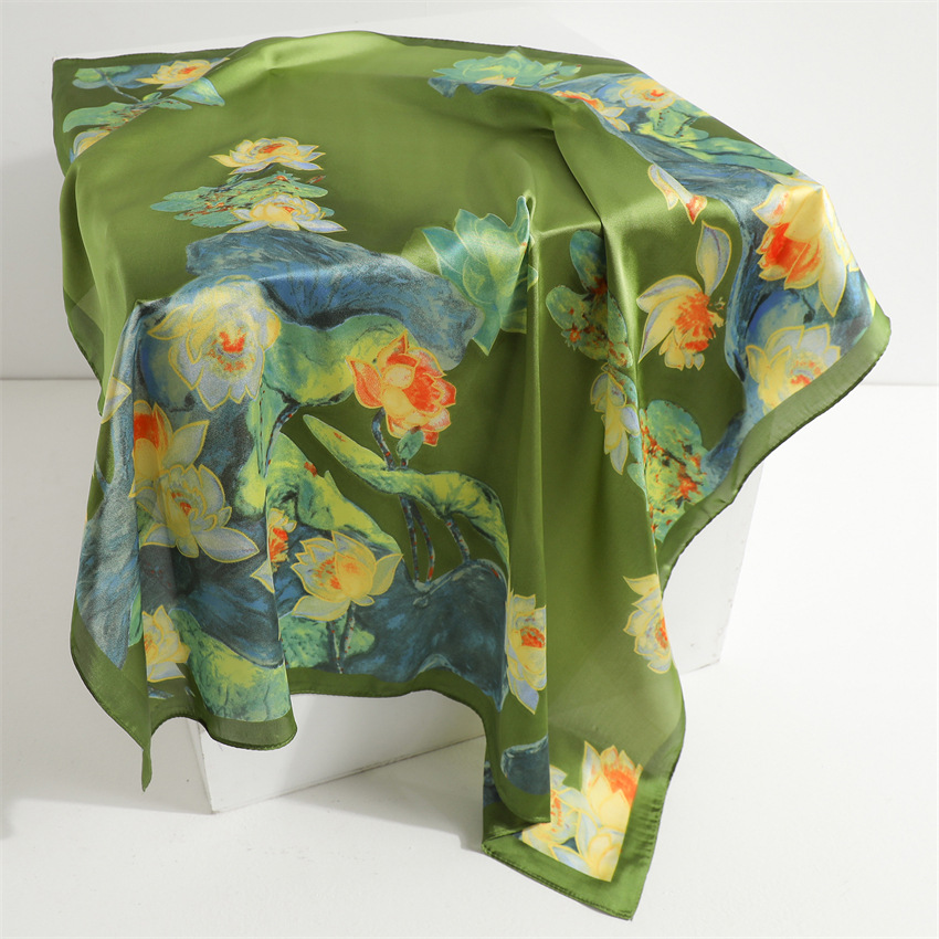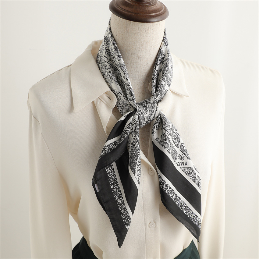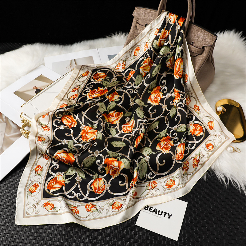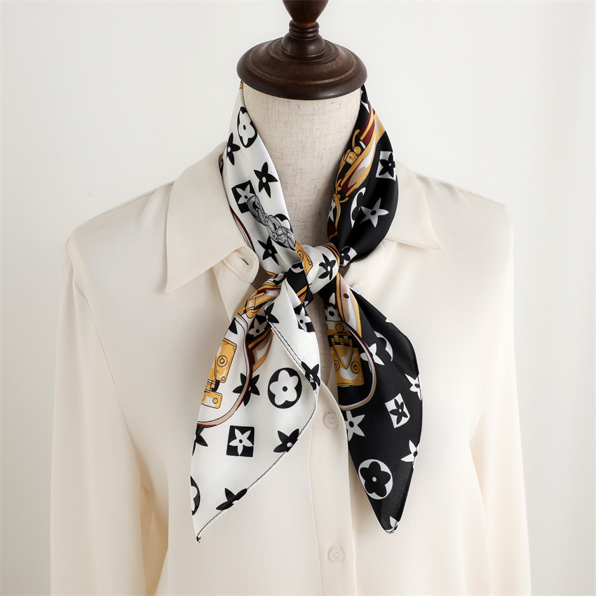 새로운 인쇄 실크 꽃 패션 작은 광장 스카프 여성의 봄과 여름 얇은 선 스크린 장식 실 실크 스카프 스카프