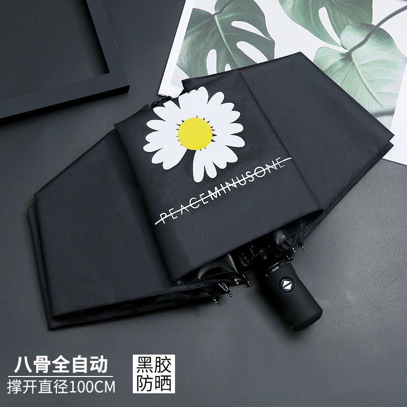 리틀 데이지 GD Quan Zhilong 같은 스타일 블랙 우산 자동 맑은 우산 UV 보호 우산 접는 태양 우산