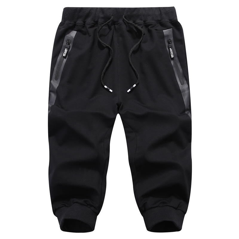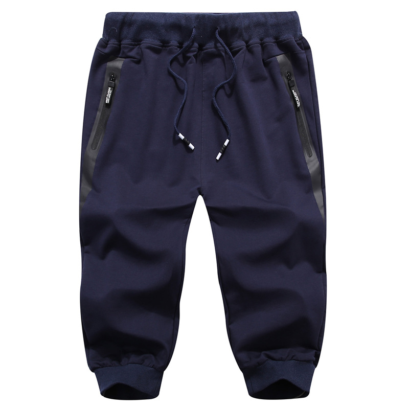 여름 남성 스포츠 캐주얼 크롭 팬츠 코튼 신축성 있는 허리 지퍼 포켓 레깅스 크로스보더 트렌디 크롭 팬츠