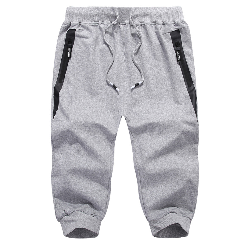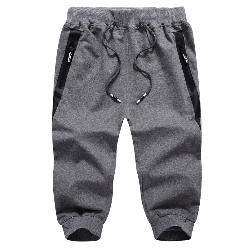 여름 남성 스포츠 캐주얼 크롭 팬츠 코튼 신축성 있는 허리 지퍼 포켓 레깅스 크로스보더 트렌디 크롭 팬츠스토어 가기
