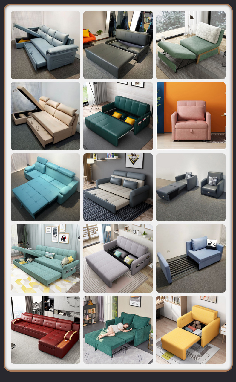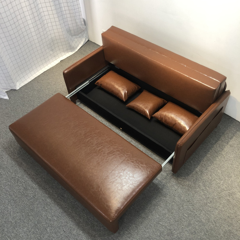 가죽 아트 소파 베드 이중 사용 접이식 소형 아파트 거실 다기능 수납 라텍스 소파 베드 더블 트리플스토어 가기