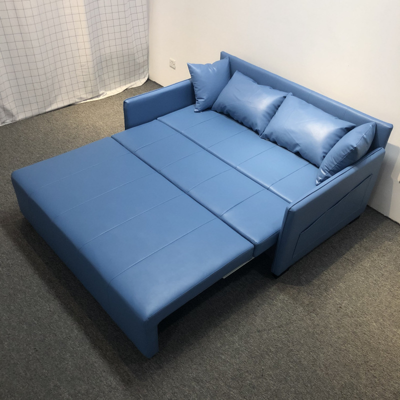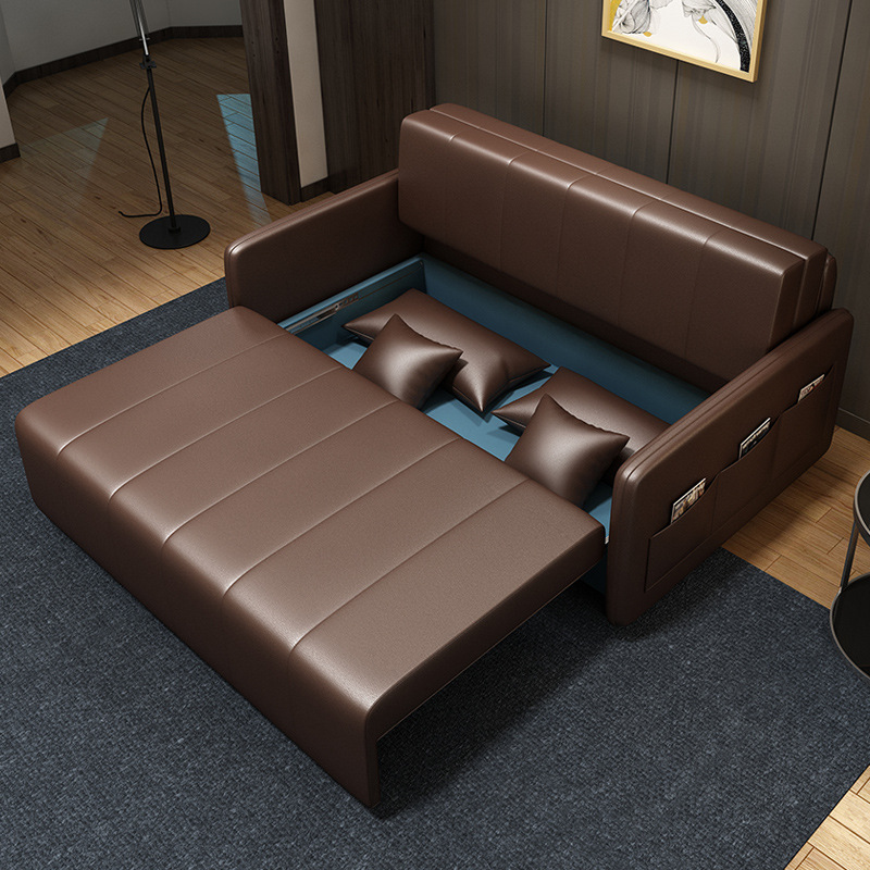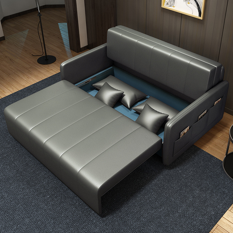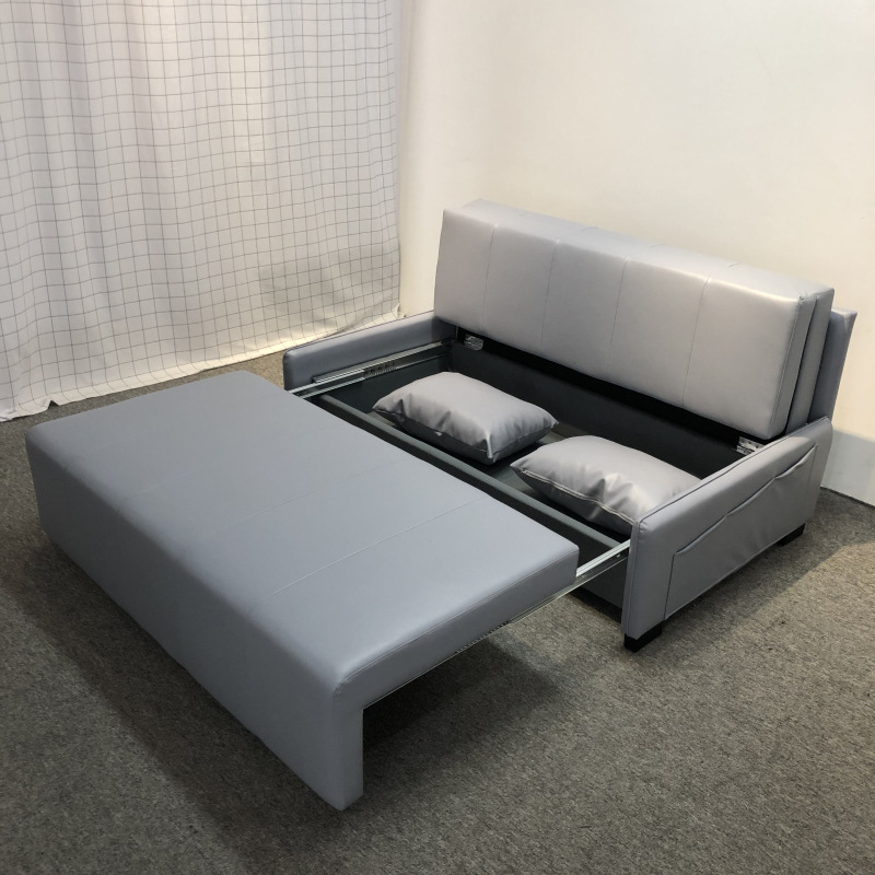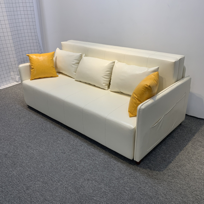 가죽 아트 소파 베드 이중 사용 접이식 소형 아파트 거실 다기능 수납 라텍스 소파 베드 더블 트리플