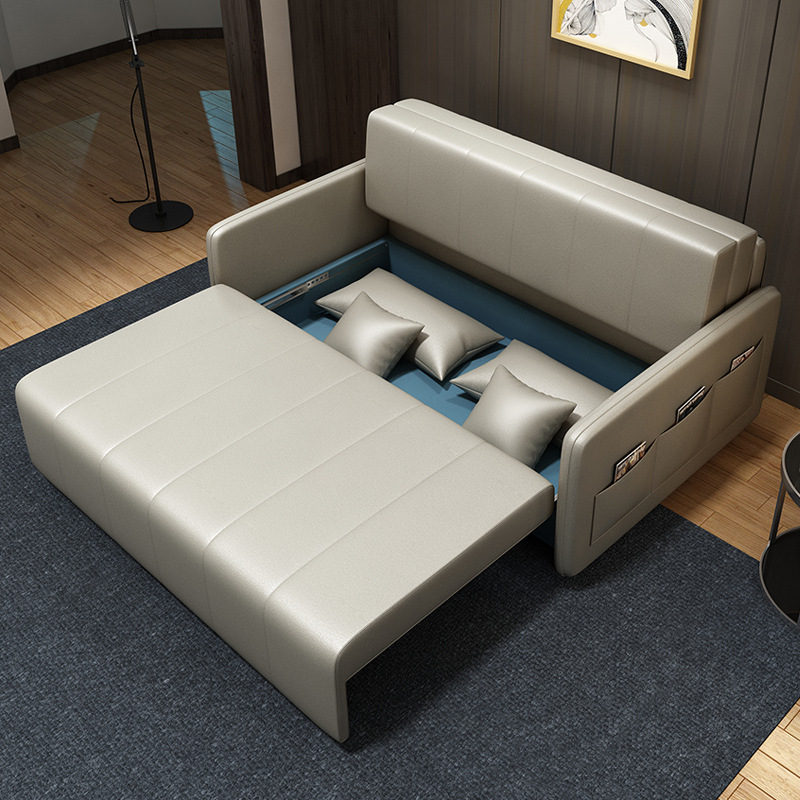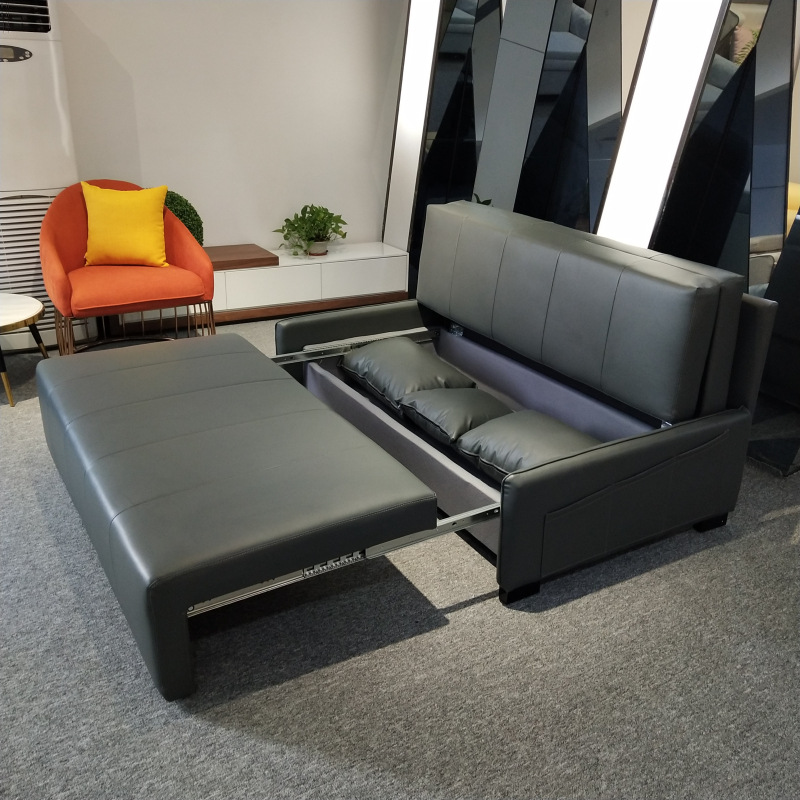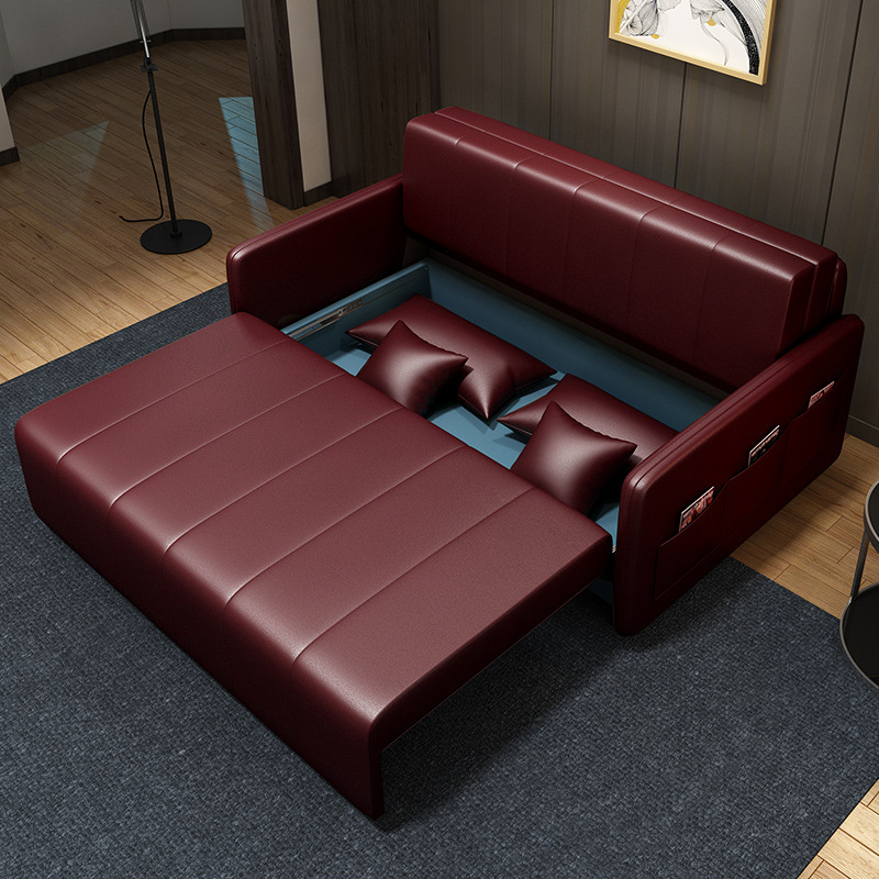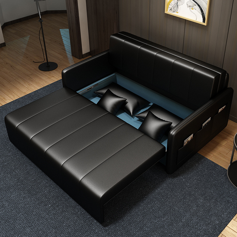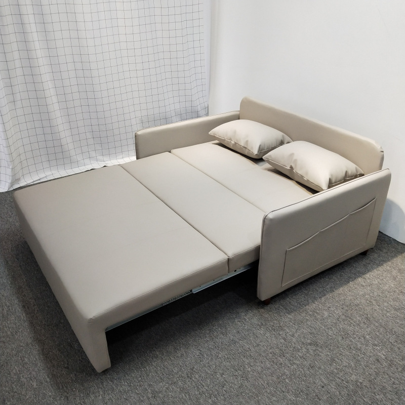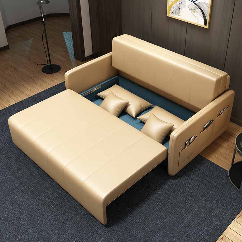 가죽 아트 소파 베드 이중 사용 접이식 소형 아파트 거실 다기능 수납 라텍스 소파 베드 더블 트리플