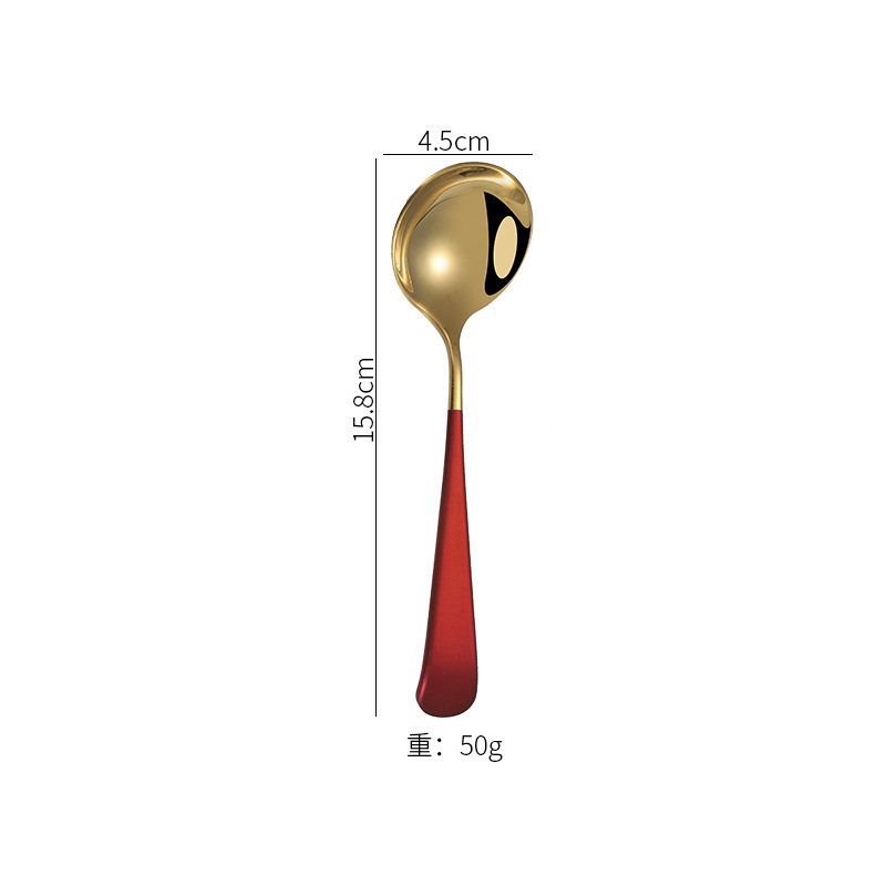 순 레드 304 스테인레스 스틸 디저트 스푼 한국 티타늄 믹싱 스푼 크리에이티브 아이 먹는 스푼 공장 도매