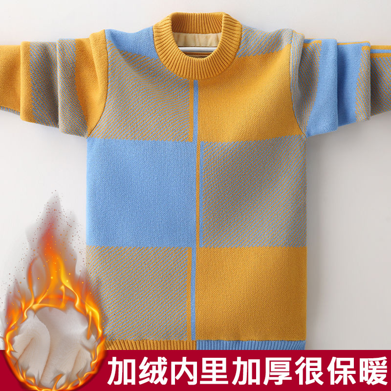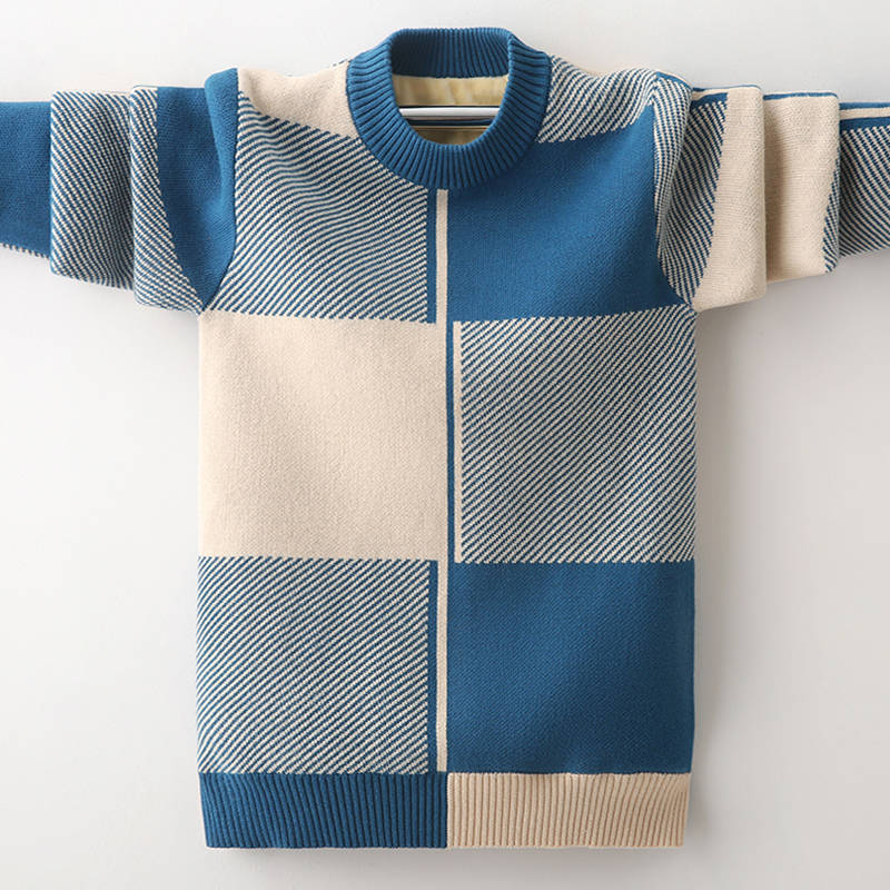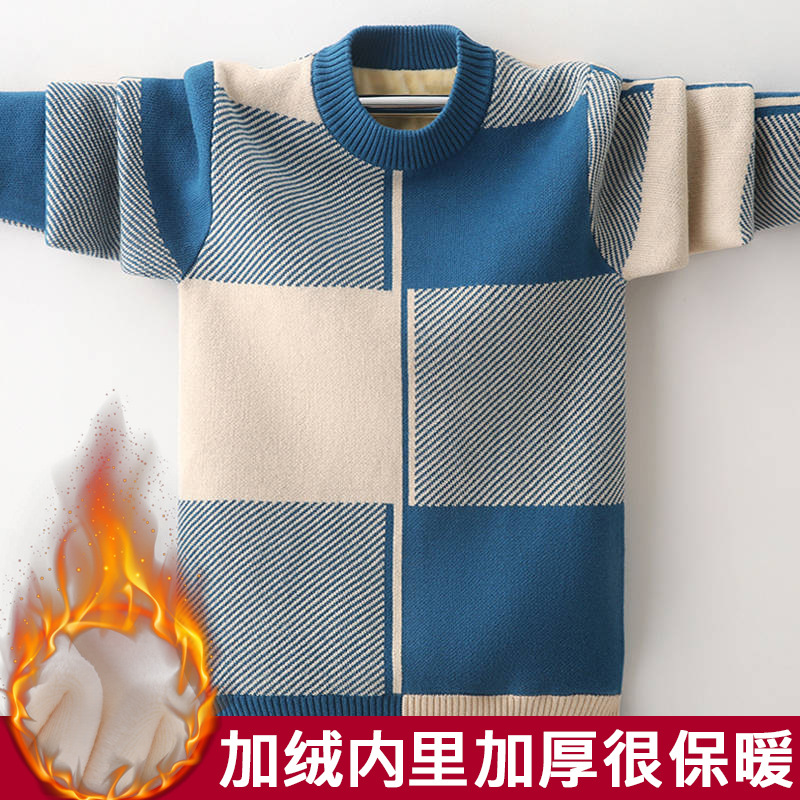 인기있는 소년 스웨터 가을과 겨울 새로운 중형 및 대형 어린이 풀오버 스웨터 면사 기모 두꺼운 봄 어린이 바닥 셔츠