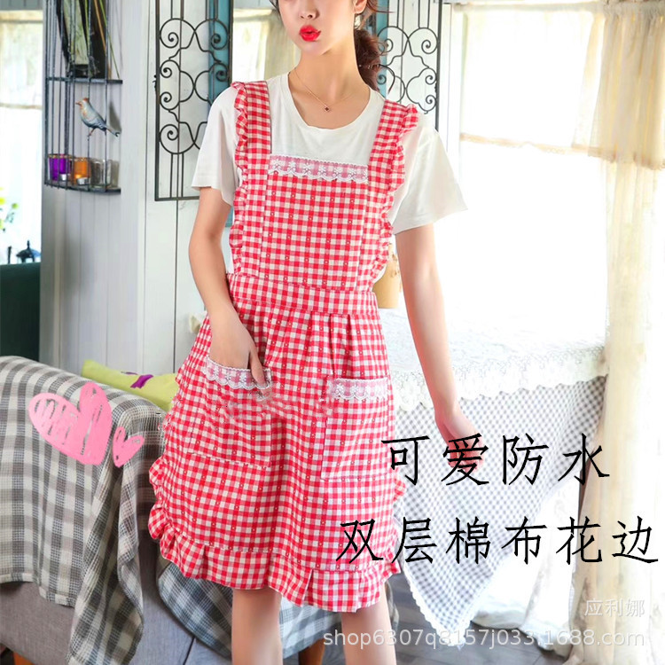 순면 가정용 주방 앞치마 레이스 더블 레이어 요리 한국 패션 귀여운 공주 허리 우유 차 가게 일하는 여성스토어 가기
