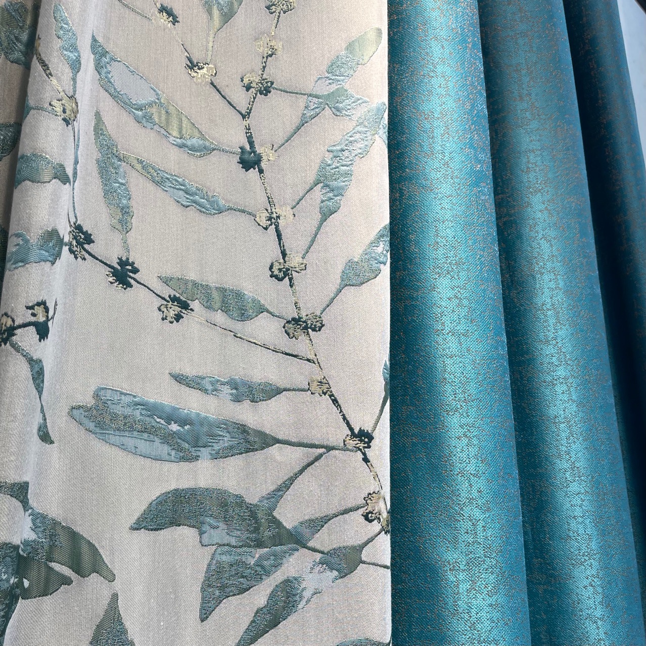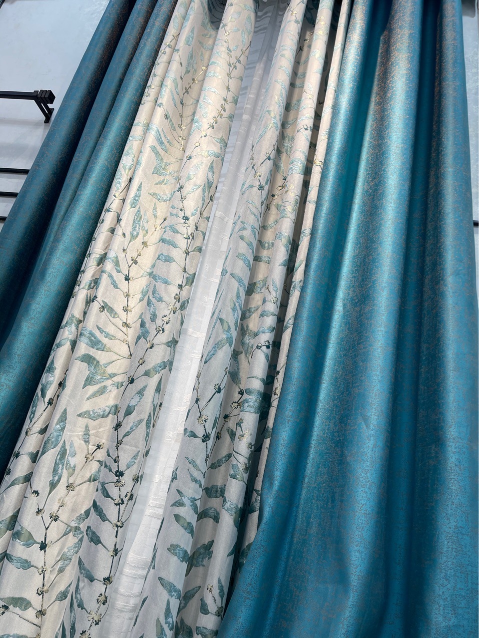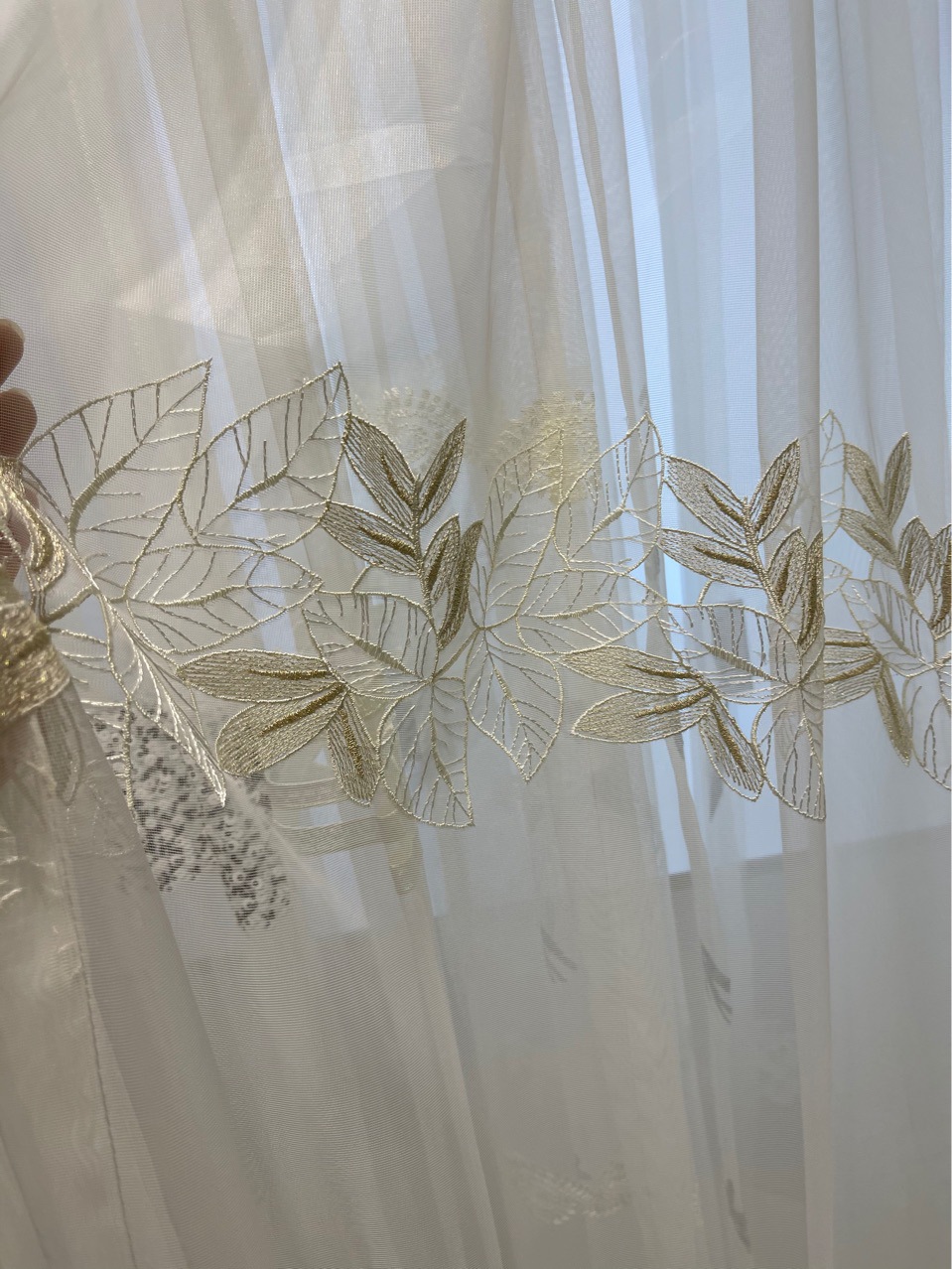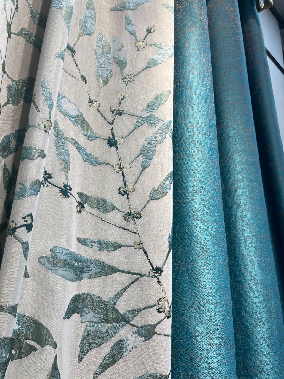 2021 대외 무역 그린 골드 실크 리프 스티칭 커튼 엔트리 럭셔리 패션 미국 목가적 인 거실 침실 북유럽 스타일