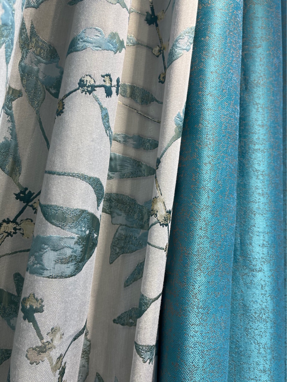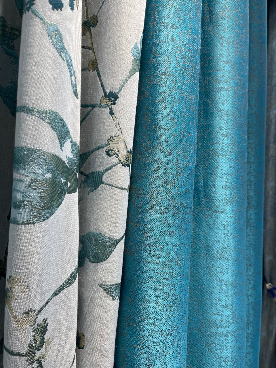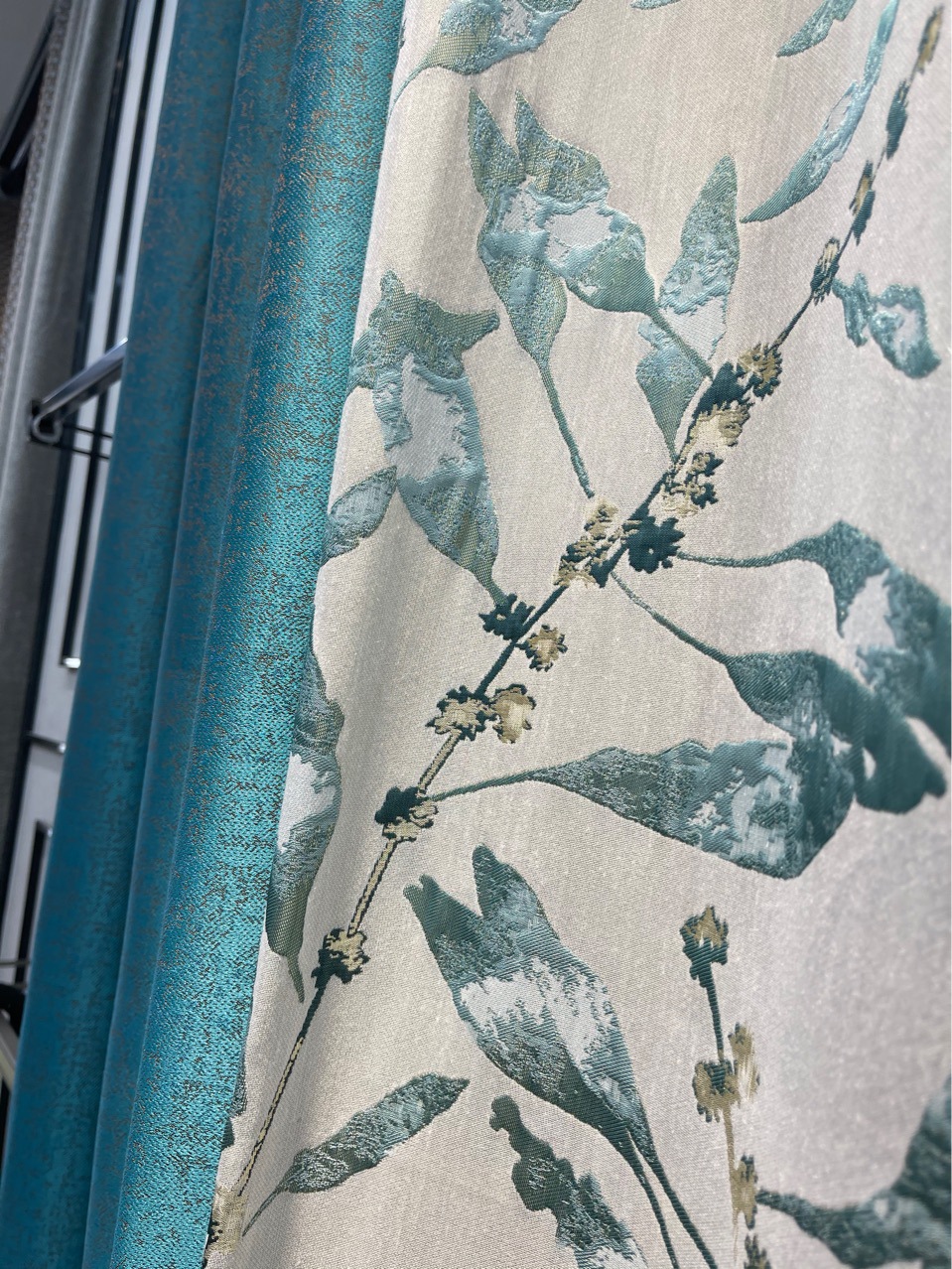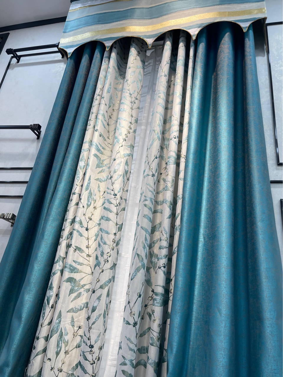 2021 대외 무역 그린 골드 실크 리프 스티칭 커튼 엔트리 럭셔리 패션 미국 목가적 인 거실 침실 북유럽 스타일