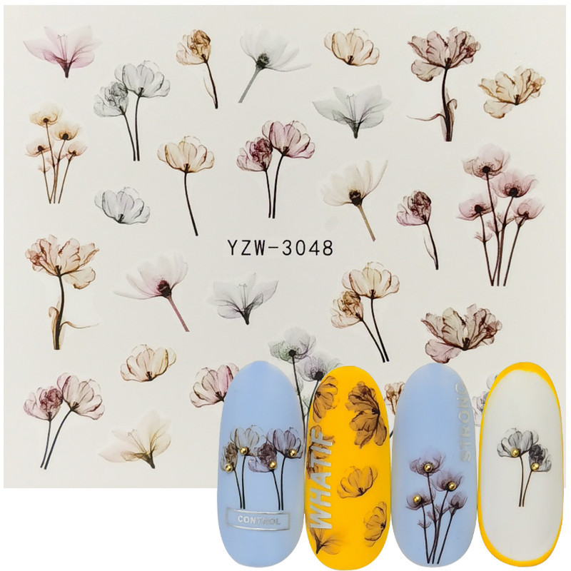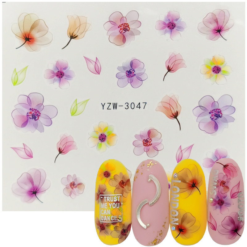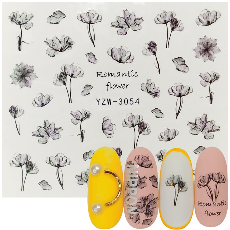 2020 인터넷 연예인 신선한 네일 아트 데칼 손으로 그린 토템 로즈 라벤더 반투명 작은 꽃 네일 워터 스티커
