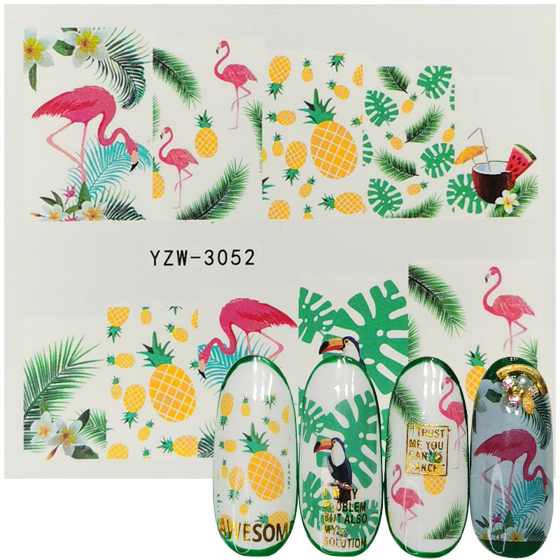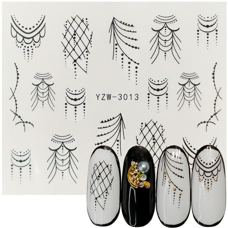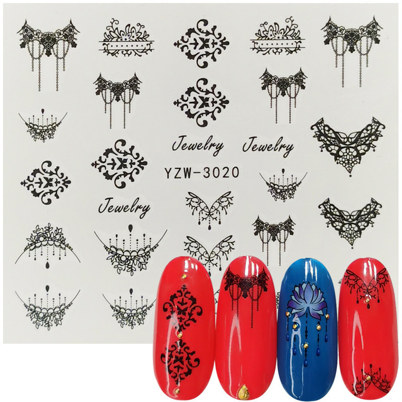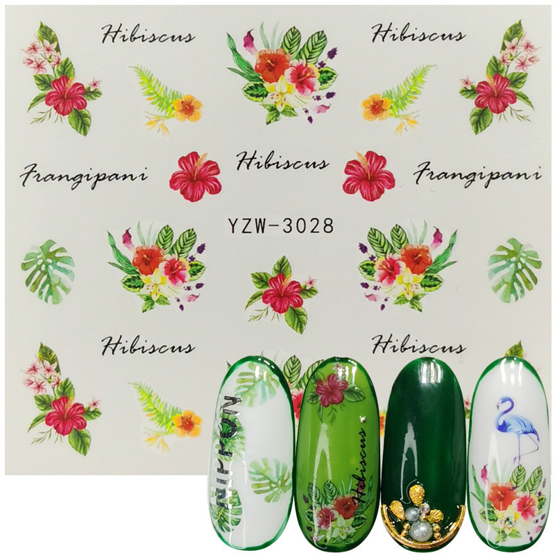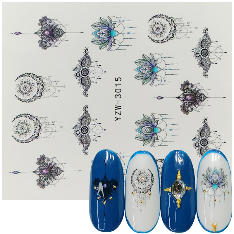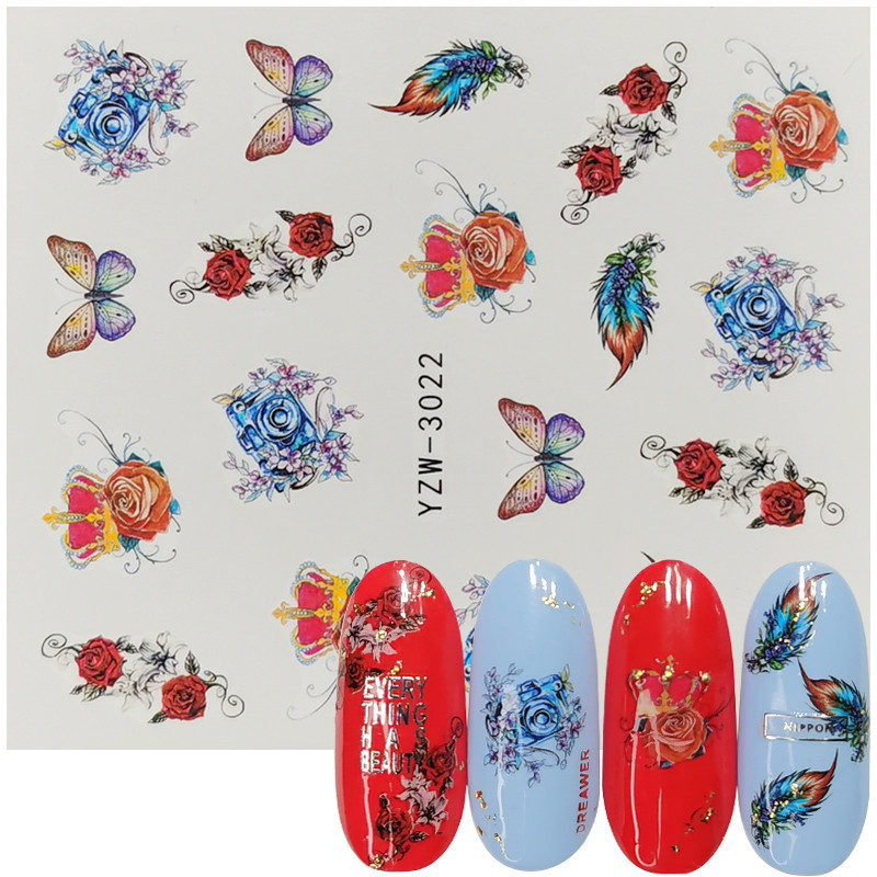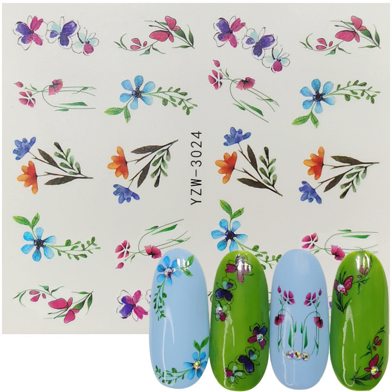 2020网红小清新美甲贴花 手绘图腾玫瑰花 薰衣草半透小花指甲水贴