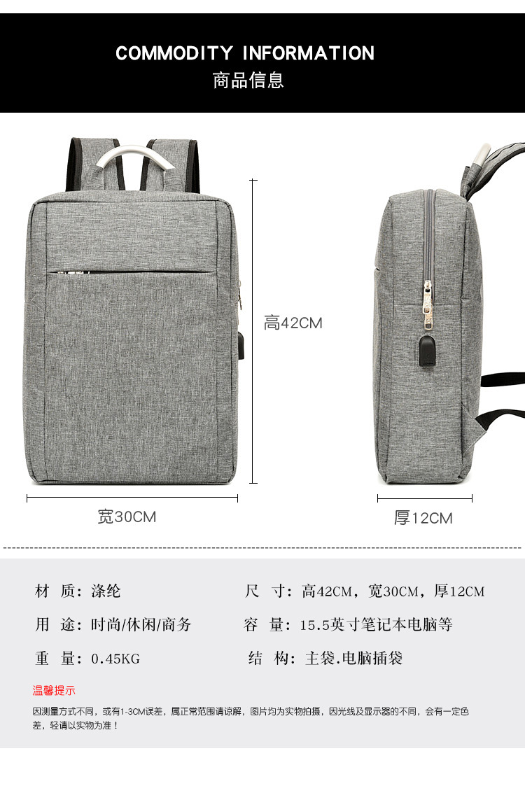 비즈니스 여행 배낭 남성용 레저 여행 배낭 백팩 USB 인터페이스 충전 컴퓨터 가방 책가방