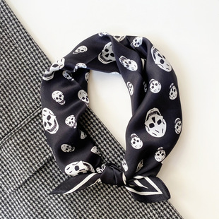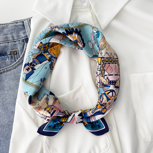 创意卡通桑蚕丝围巾春夏季薄款时髦真丝小方巾秋冬装饰职业小领巾