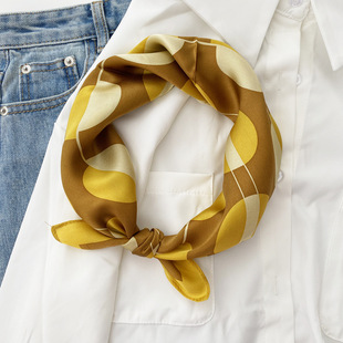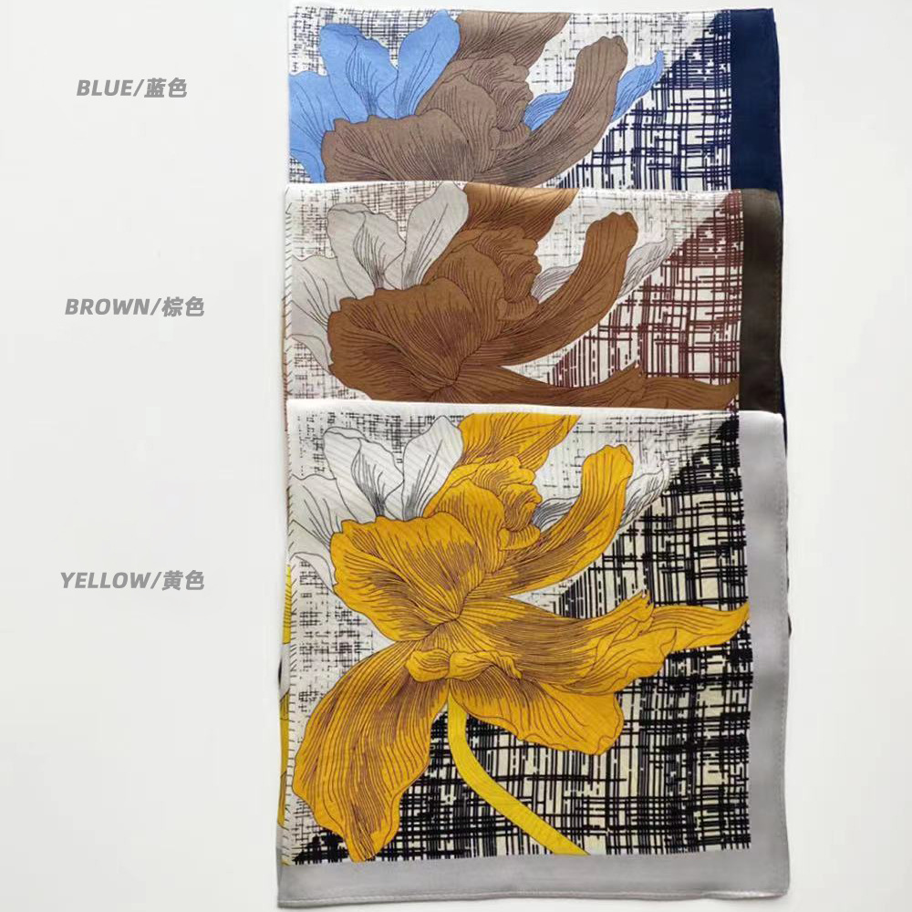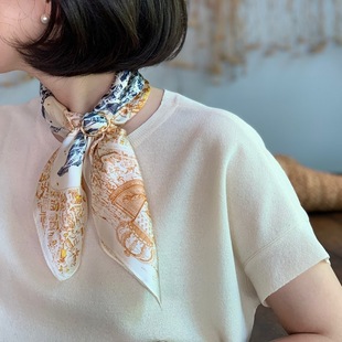 日系新款几何春夏季丝巾时尚53cm秋冬桑蚕丝小方巾真丝围巾scarf