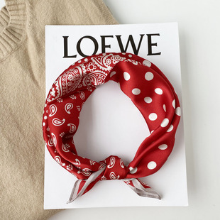 超百搭春季丝巾女春夏新款时尚韩国拼色腰果真丝丝巾简约波点方巾