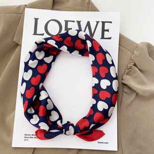 真丝小方巾 100%桑蚕丝围巾韩版春秋百搭少女爱心护颈丝巾小领巾