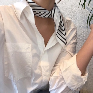 安家孙俪同款丝巾条纹简约真丝小方巾桑蚕丝丝绸女士职业领巾围巾
