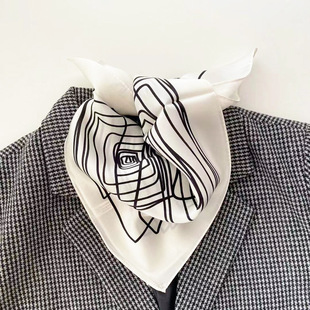 2021早春新款护颈围脖桑蚕丝丝绸围巾chic简约白色几何真丝方巾女