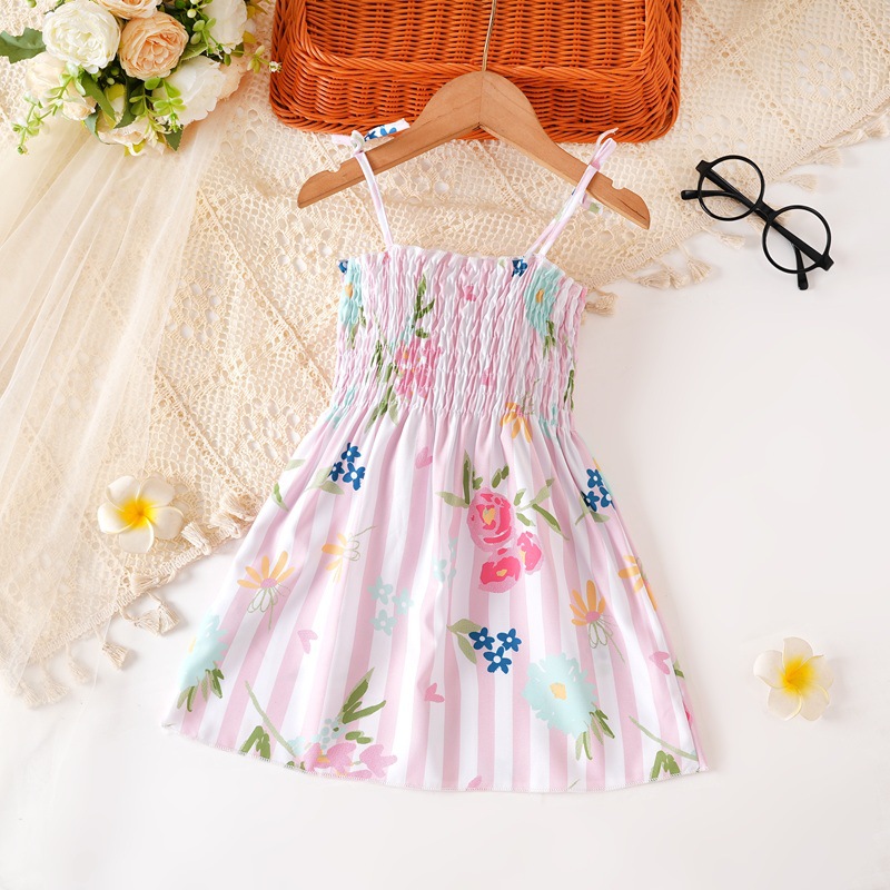 2026 여름 신상품 해변 어린이 공주 드레스 소녀 단색 프린트 스트랩 드레스 아기 드레스 어린이 드레스스토어 가기