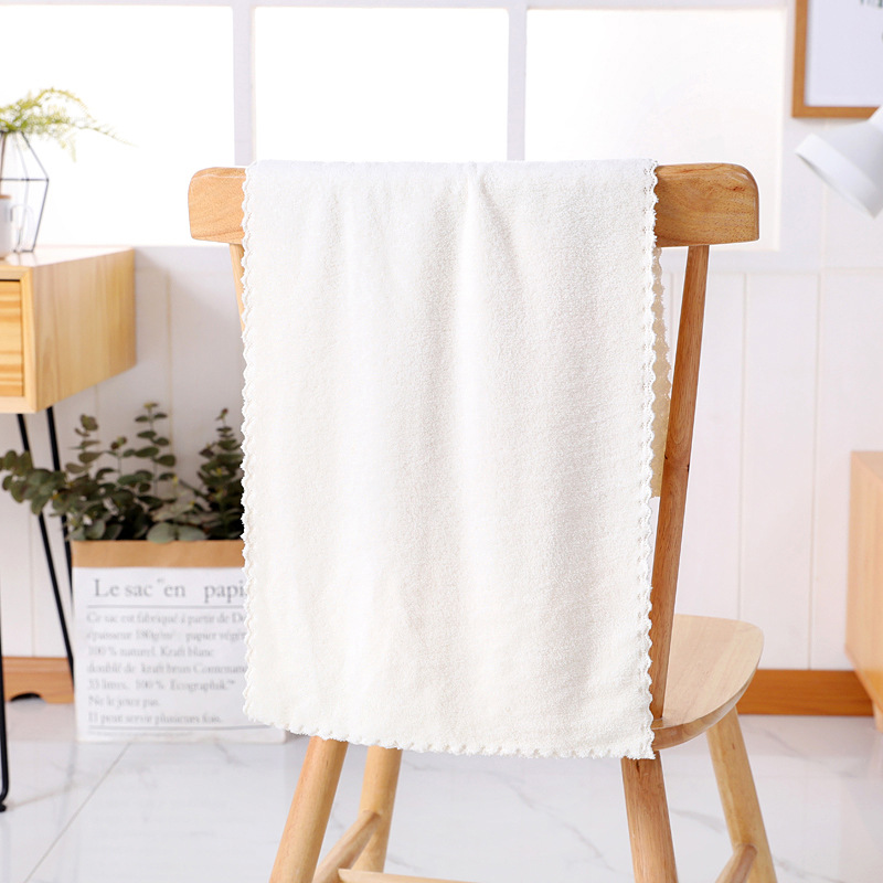 단색 두꺼운 산호벨벳 타월, 산호벨벳 목욕타월, 부드럽고 흡수력 좋은 두꺼운 만화 캐릭터 비치타월 세트, 흰색