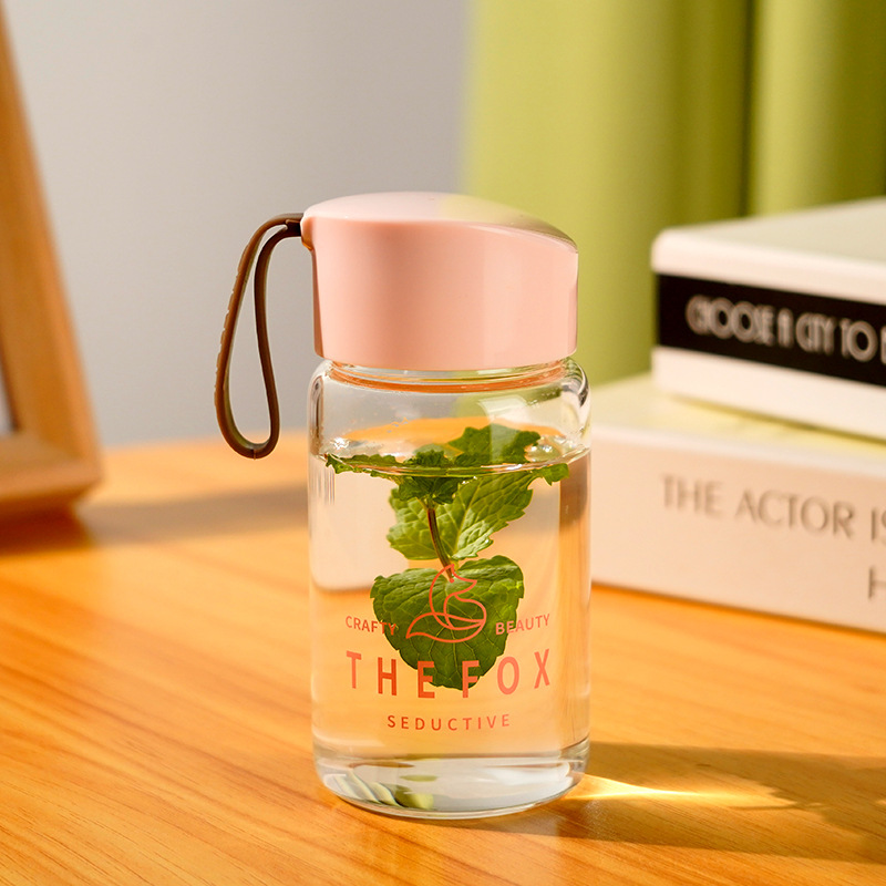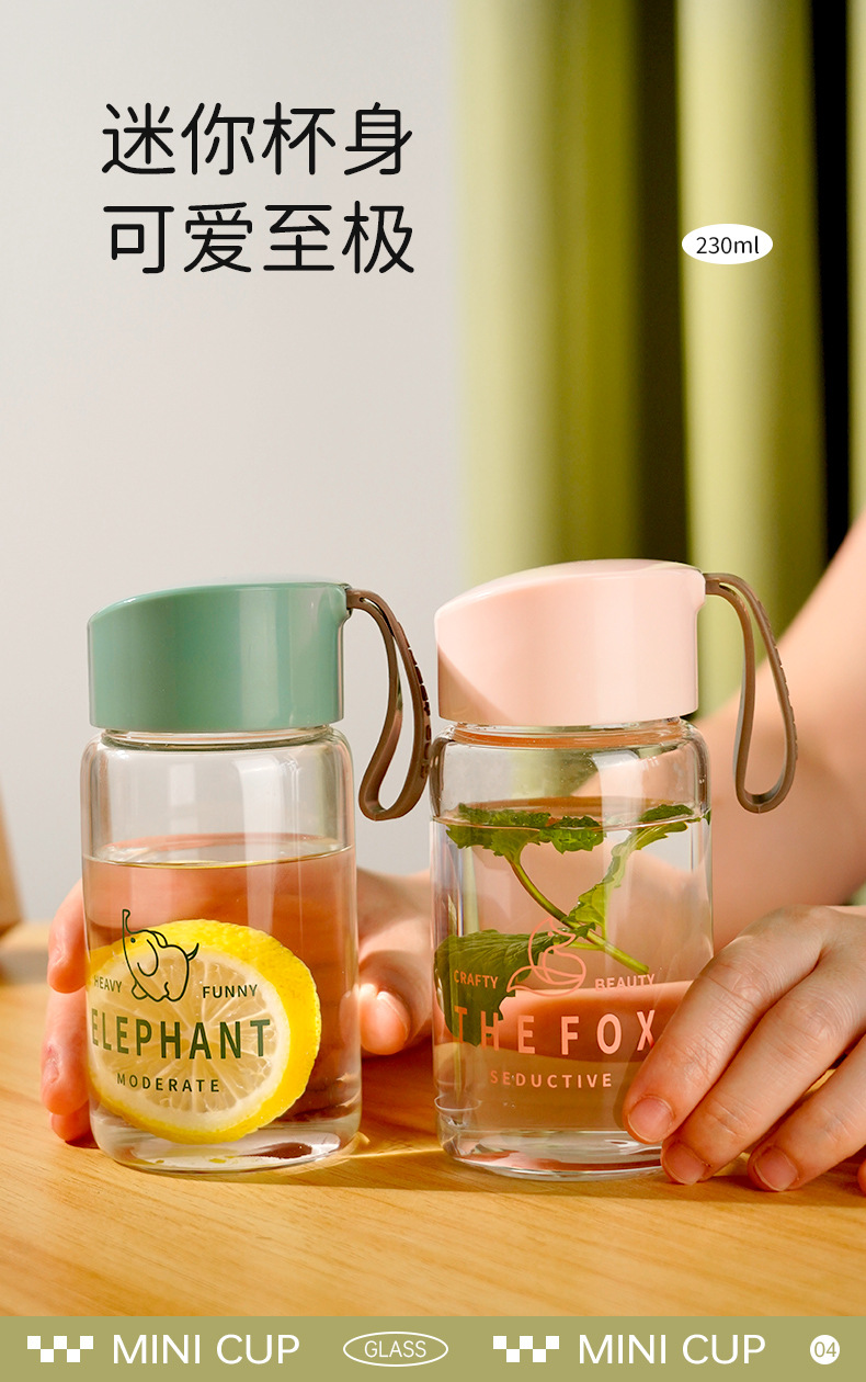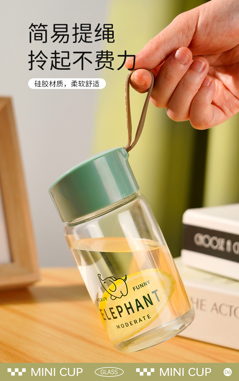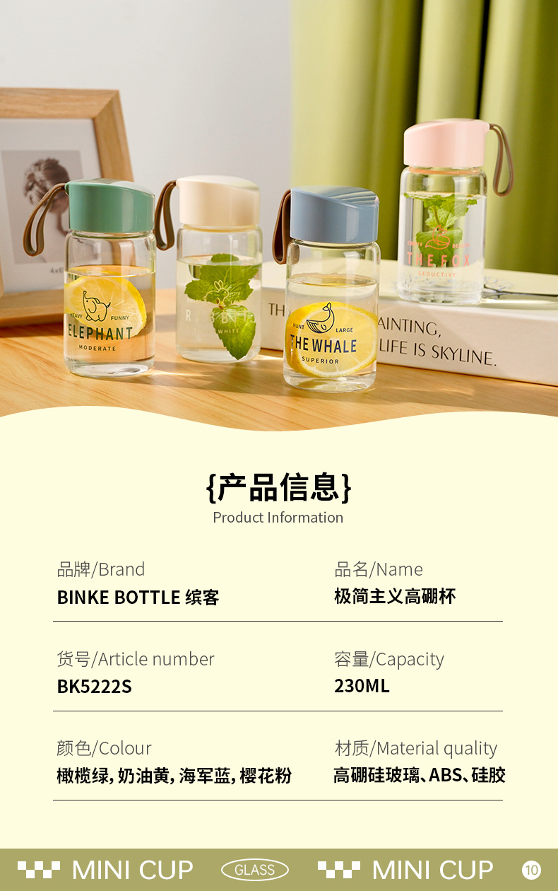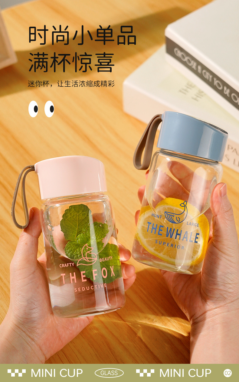 Binke 새로운 간단한 작은 귀여운 휴대용 유리 컵 끈 싱글 레이어 높은 붕규산 물 컵 학생 커플