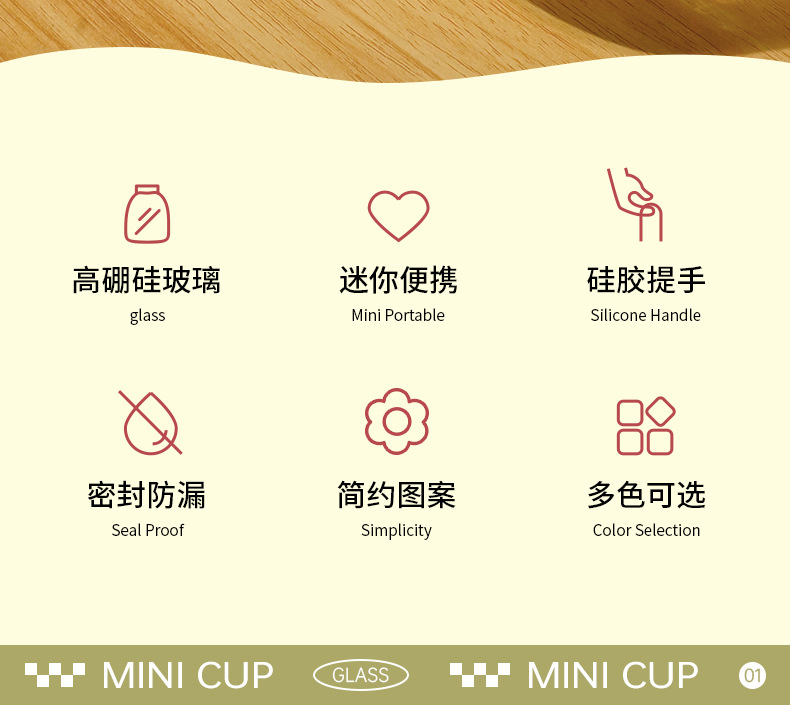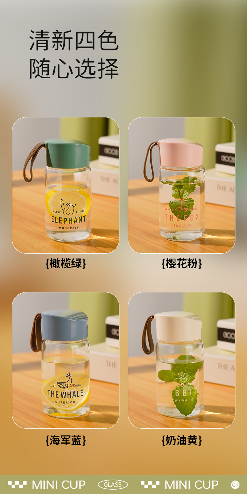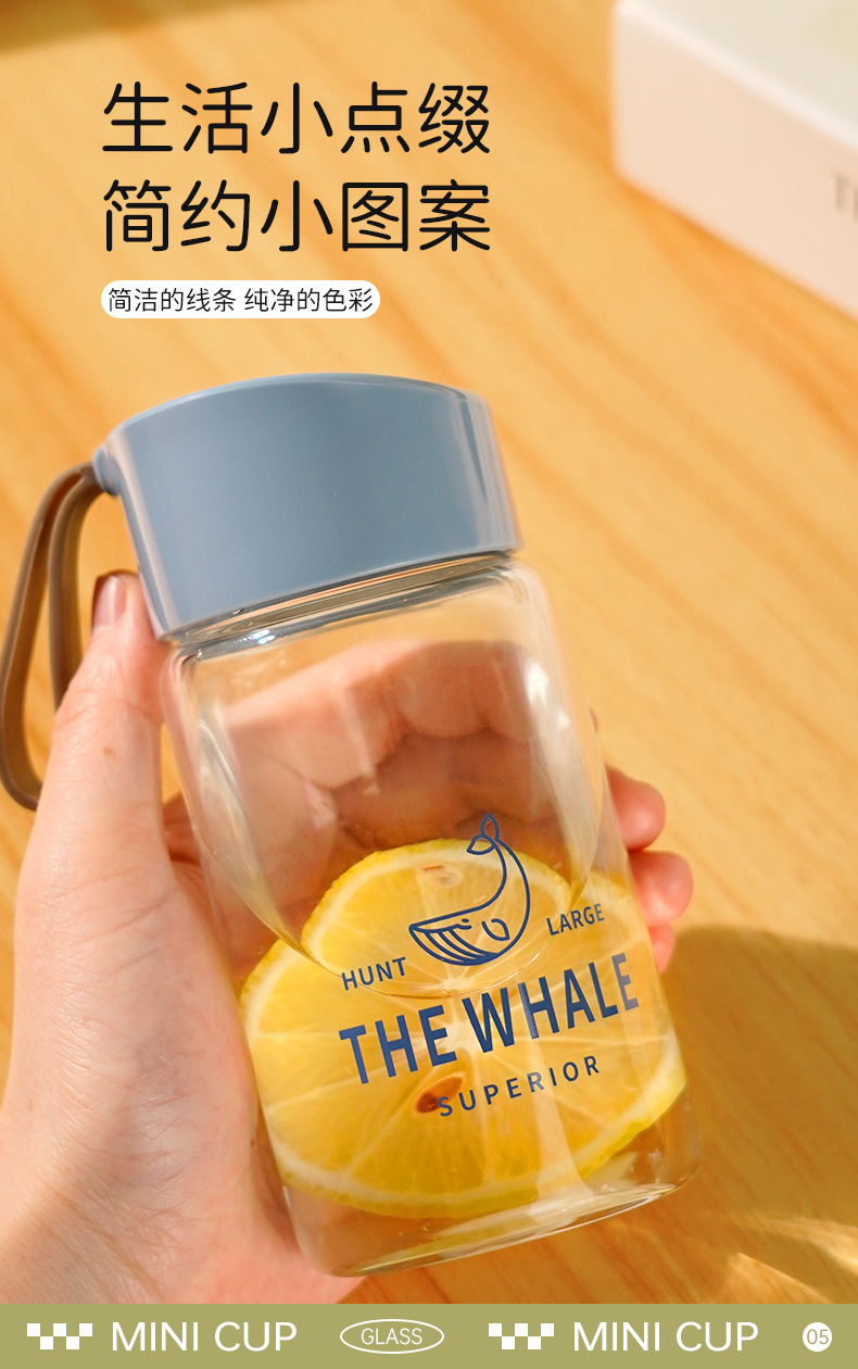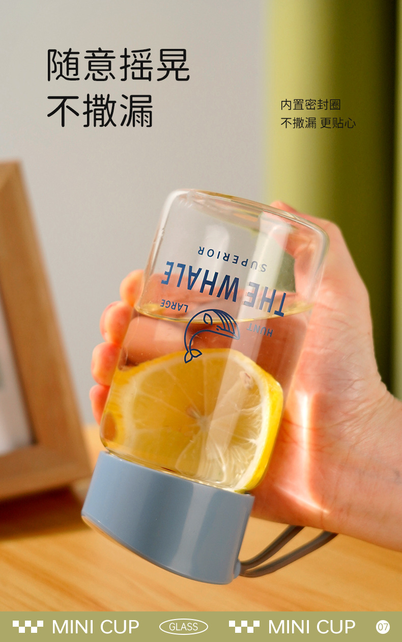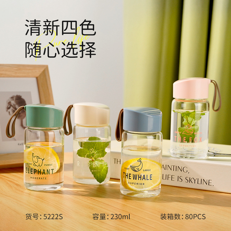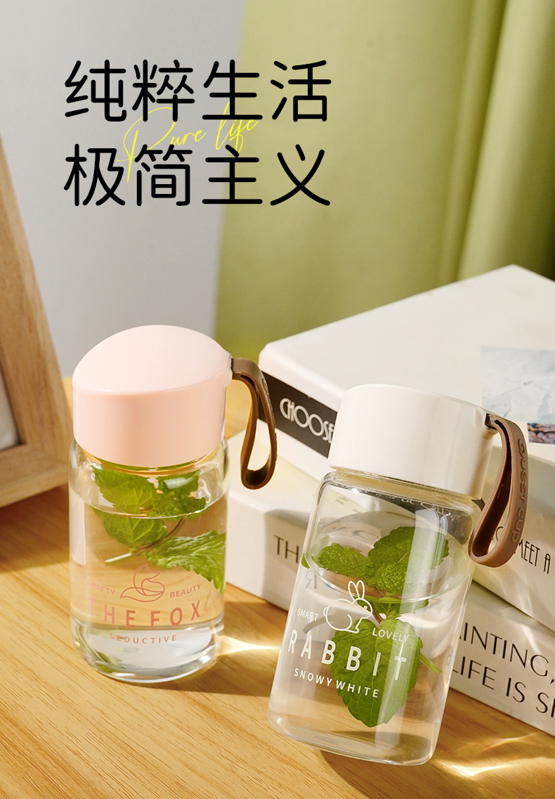 Binke 새로운 간단한 작은 귀여운 휴대용 유리 컵 끈 싱글 레이어 높은 붕규산 물 컵 학생 커플