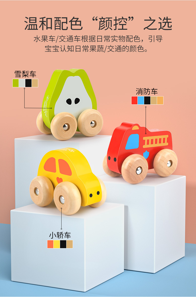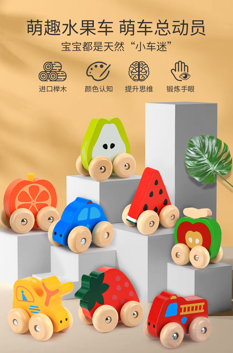 Daniquit 관성 자동차 장난감 프레스 소리 과일 자동차 교통 자동차 나무 장난감스토어 가기